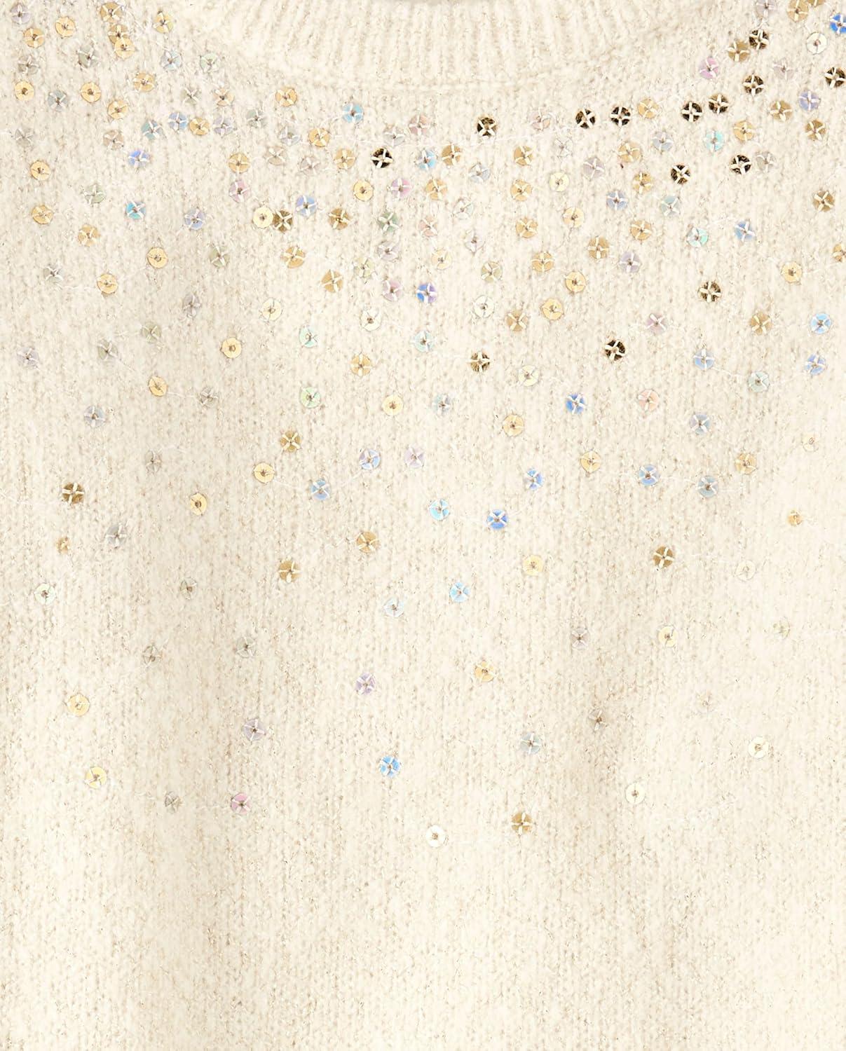 The Children’s Place Baby and Toddler Girls’ Long Sleeve Sweater Dress(Beaded White Daisy)
