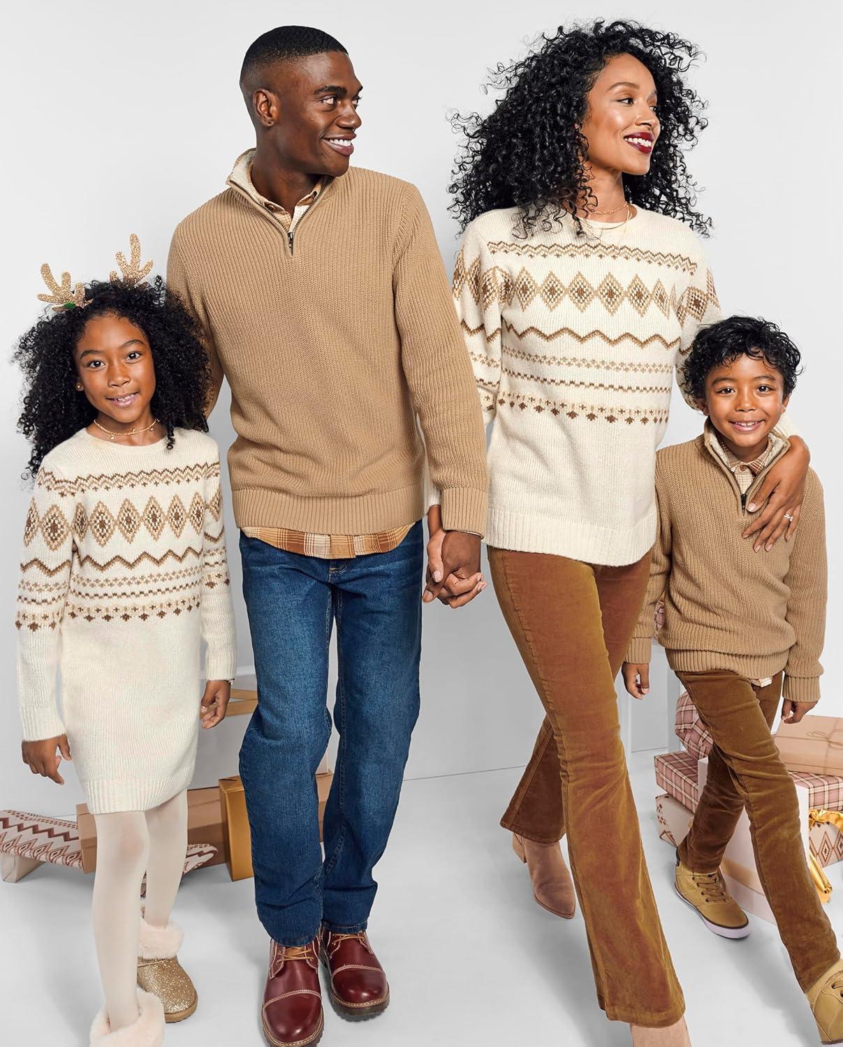 The Children’s Place Baby and Toddler Girls’ Long Sleeve Sweater Dress(Cinnamon Fairisle)