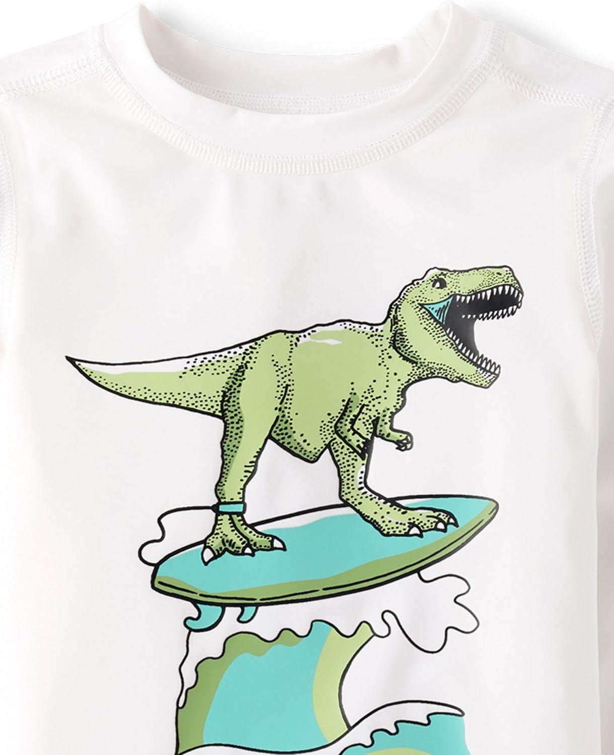 The Children’s Place Baby-Boys and Toddler Long Sleeve Rashguard and Swim Trunks, 2 Piece Set(Surfing Dino)