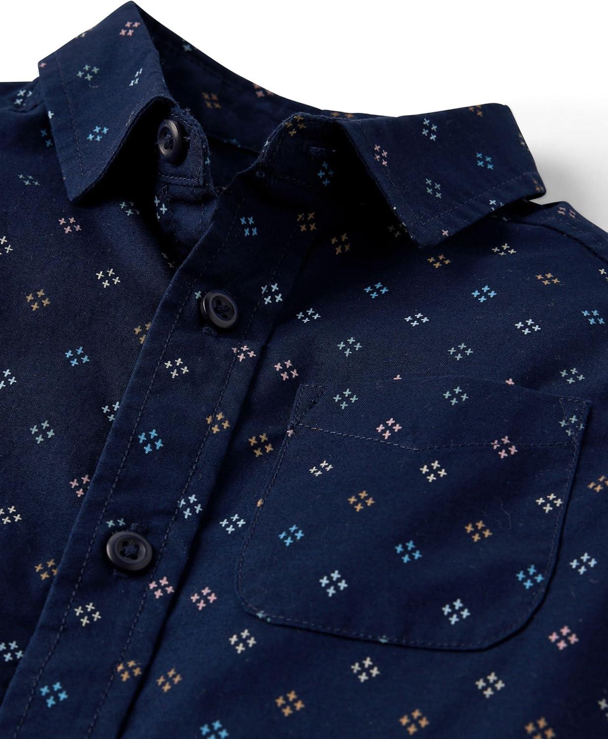 The Children’s Place Baby Boys’ and Toddler Poplin Short Sleeve Button Down Shirt(Blue Palm Geo)