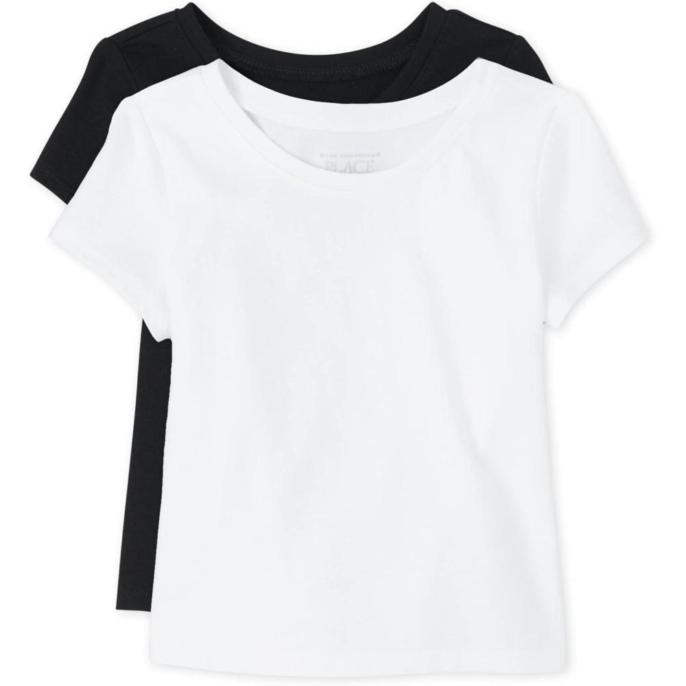 The Children's Place Baby Girls' and Toddler Basic Short Sleeve Layering T-Shirts(Black/White 2-pack)