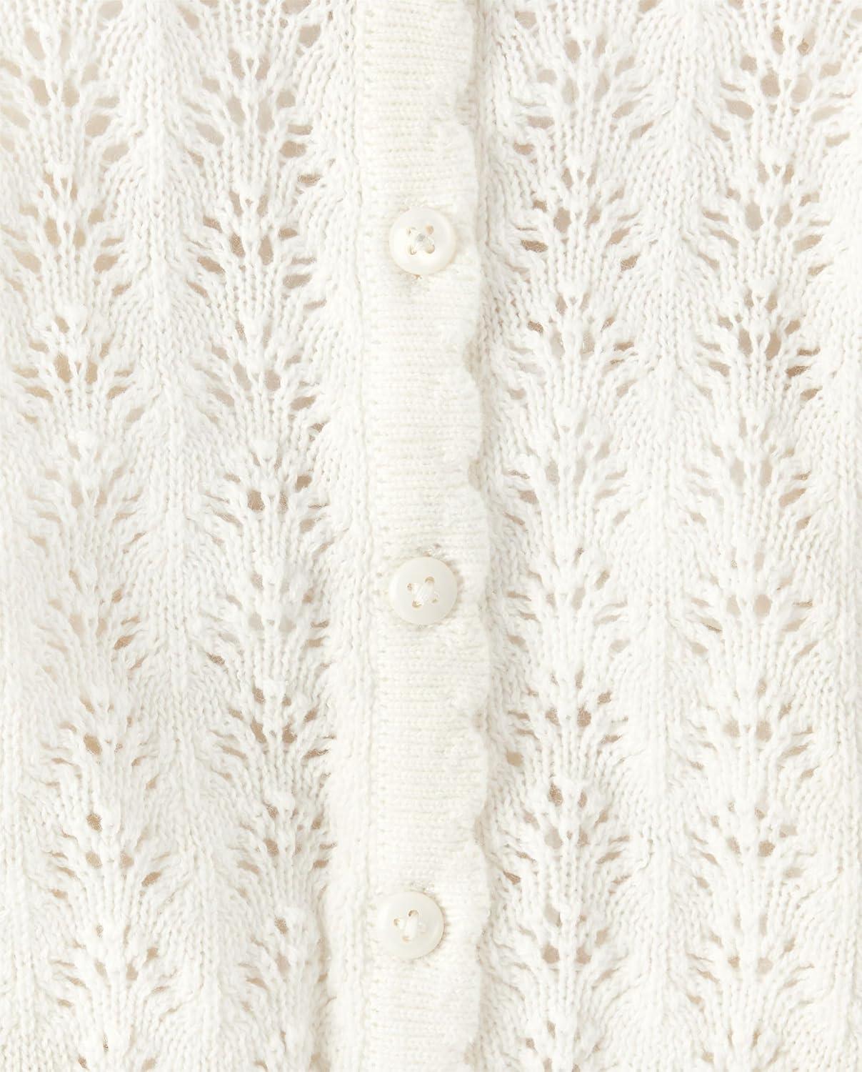 The Children’s Place Baby Girls’ and Toddler Long Sleeve Knit Button Front Cardigan(White Pointelle)