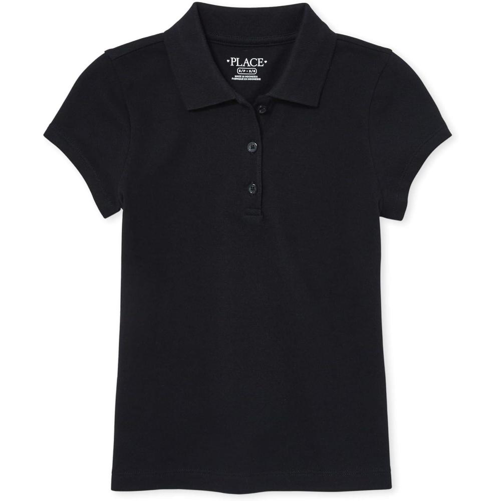 The Children’s Place baby-girls And Toddler Short Sleeve Ruffle Pique Polo(Black)