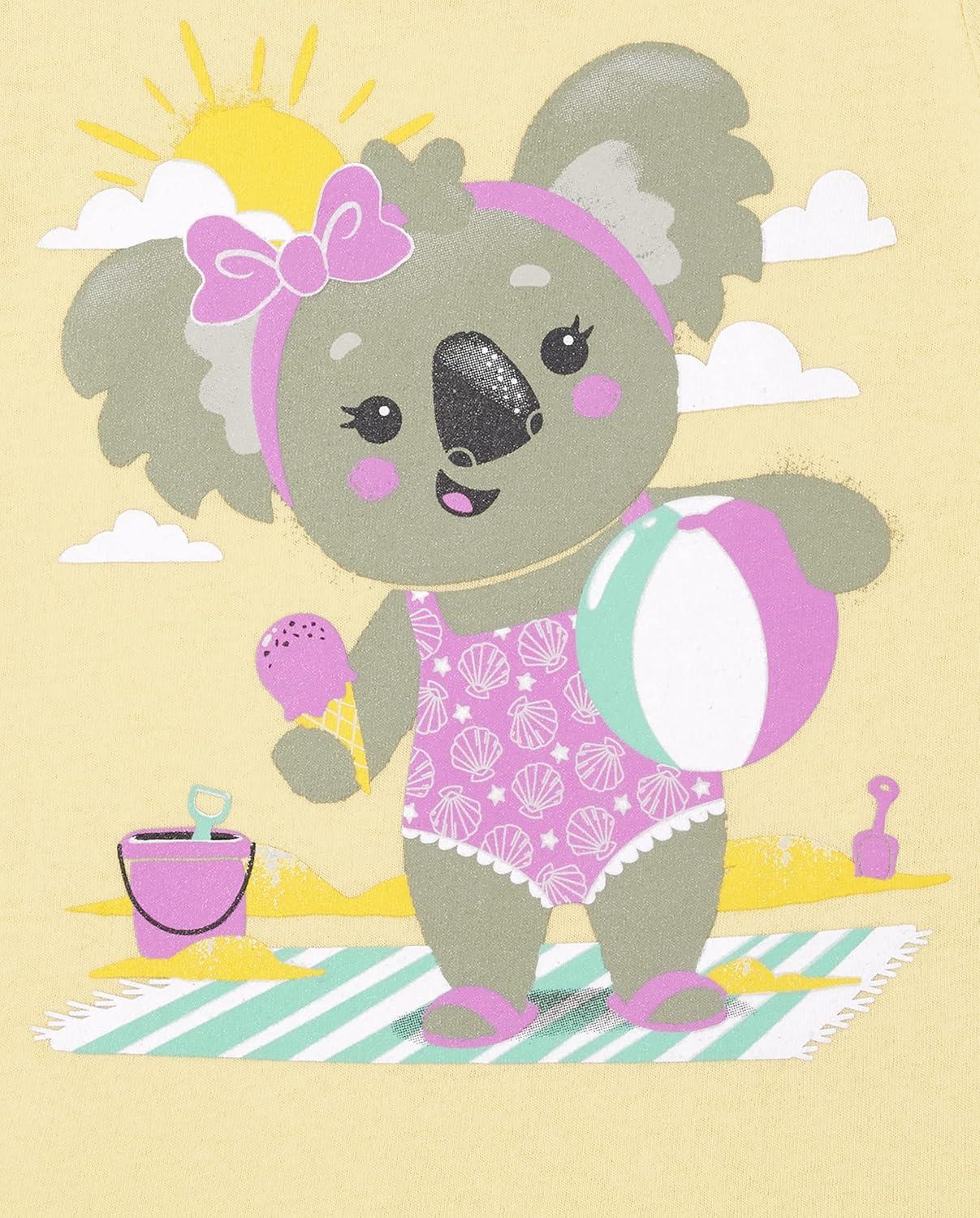 The Children's Place Baby-Girls and Toddler Unicorns,Butterflies,Trends Short Sleeve Graphic T-Shirts,3 Pack(Beach Koala/Flowers/Dino Skater)