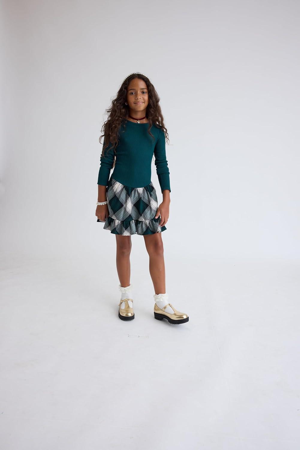 The Children’s Place Big Girls’ Long Sleeve Casual Dress(Balt Green Plaid)