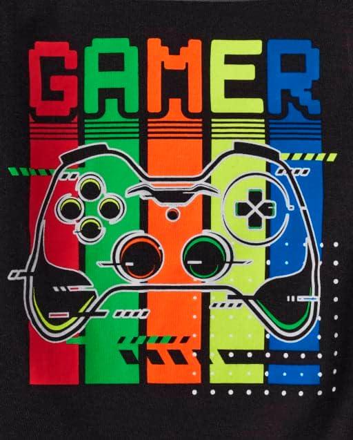 The Children’s Place boys 100% Cotton Long Sleeve Top and Pants,2 Piece Pajama Set(Gamer Glow)