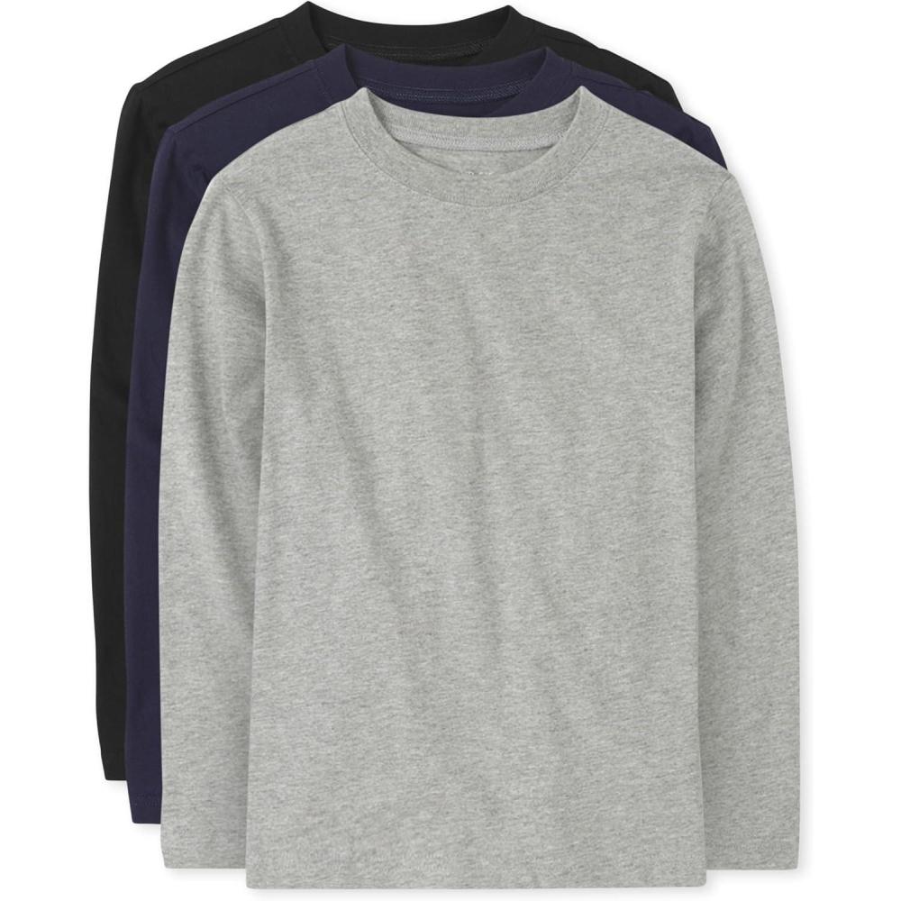 The Children’s Place Boys’ Basic Layering Long Sleeve Tee(Black/Tidal/H Gray 3-pack)