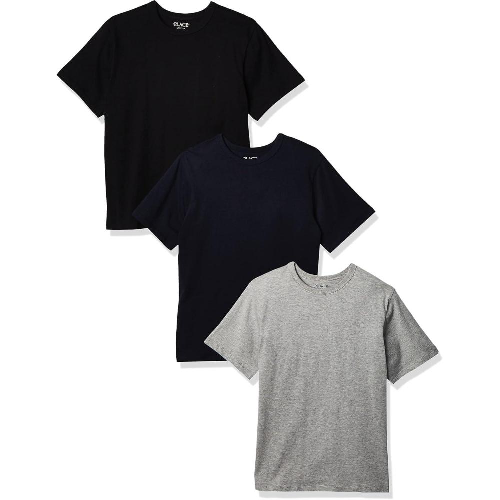 The Children’s Place Boys’ Basic V Neck T-Shirt 2 Pack(Black/Tidal/H Gray 3-pack)