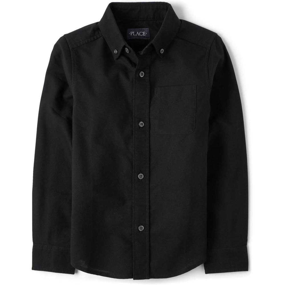 The Children's Place Boys Long Sleeve Oxford Button Down Shirt(Black)