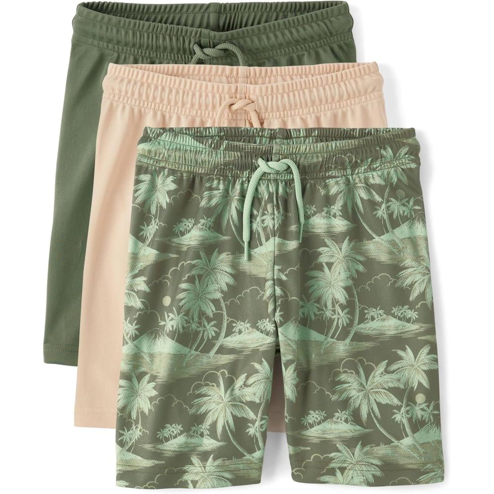 The Children’s Place Boys’ Performance Basketball Shorts 2 Pack(Tropical/Solid 3-pack)