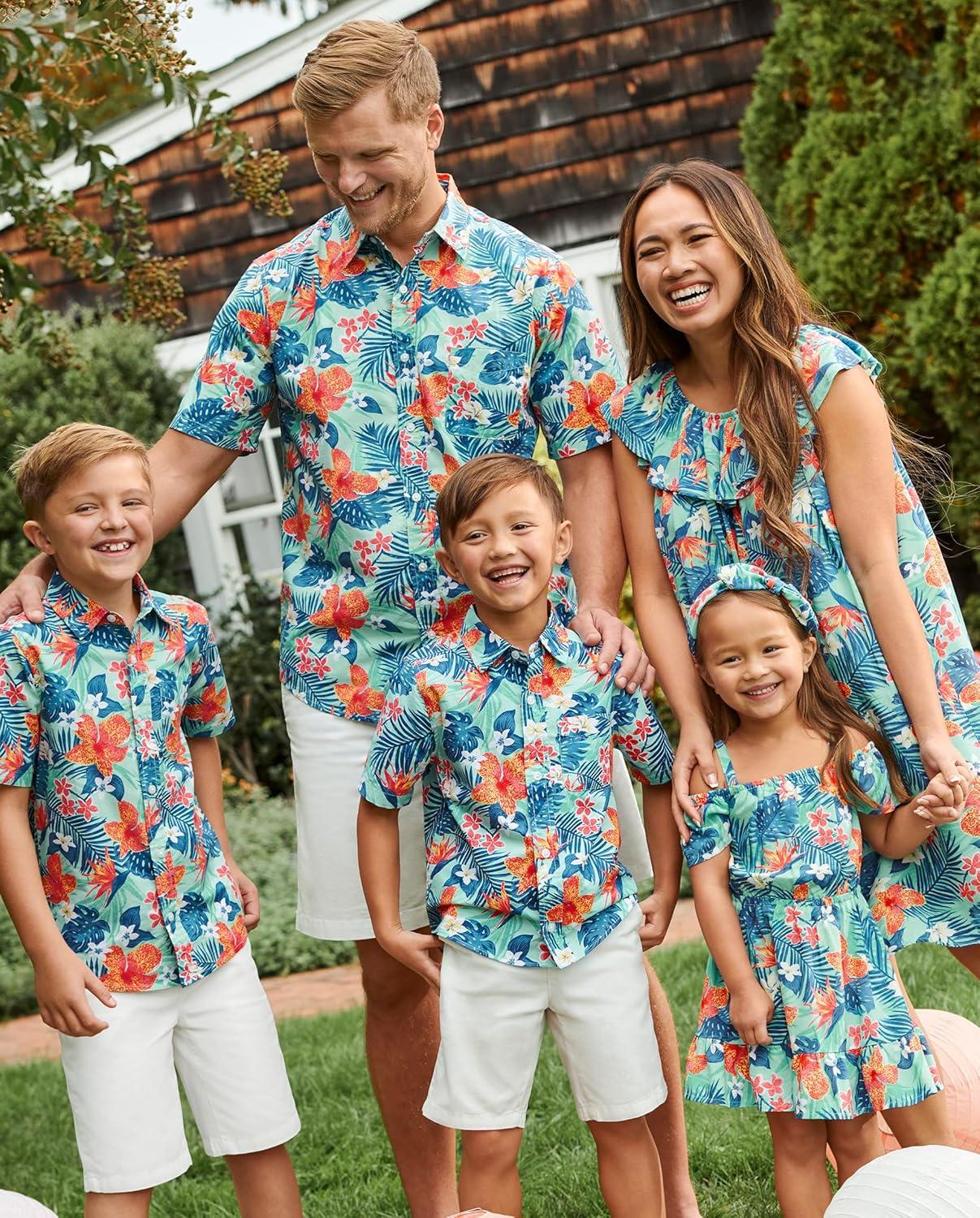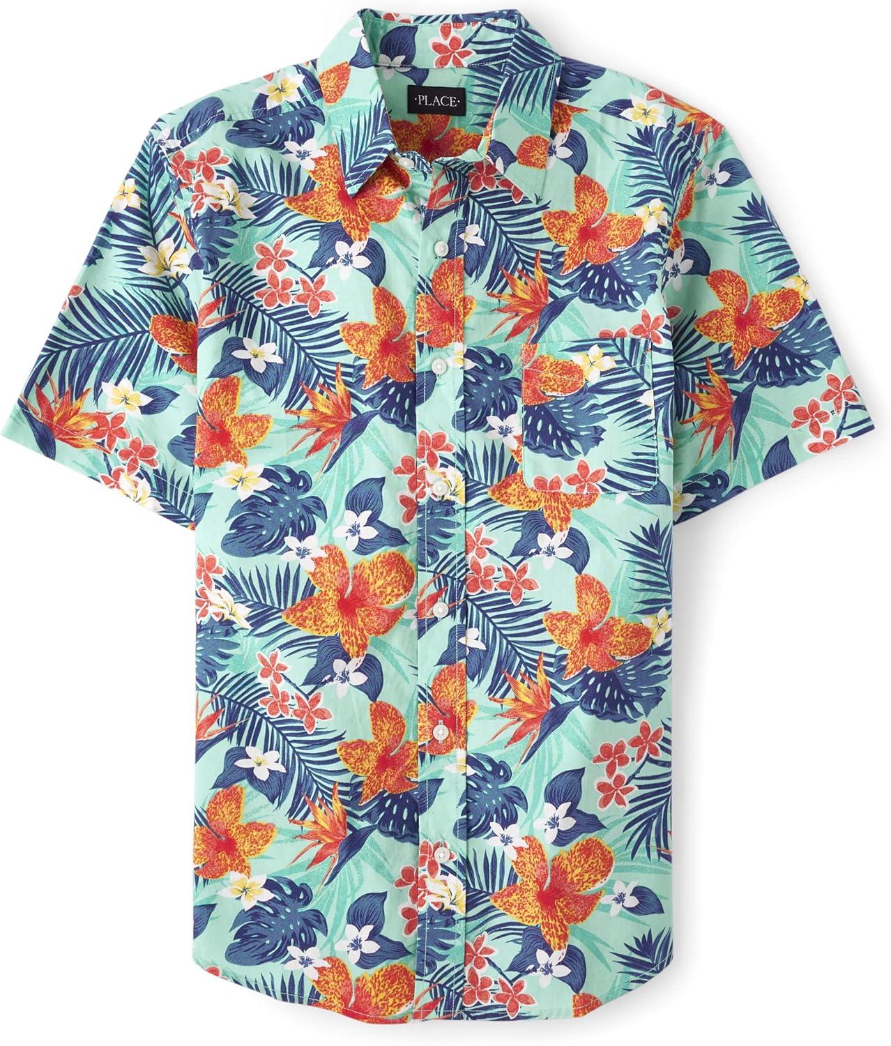 The Children’s Place boys Short Sleeve Button Up Shirt(Tropical Floral)