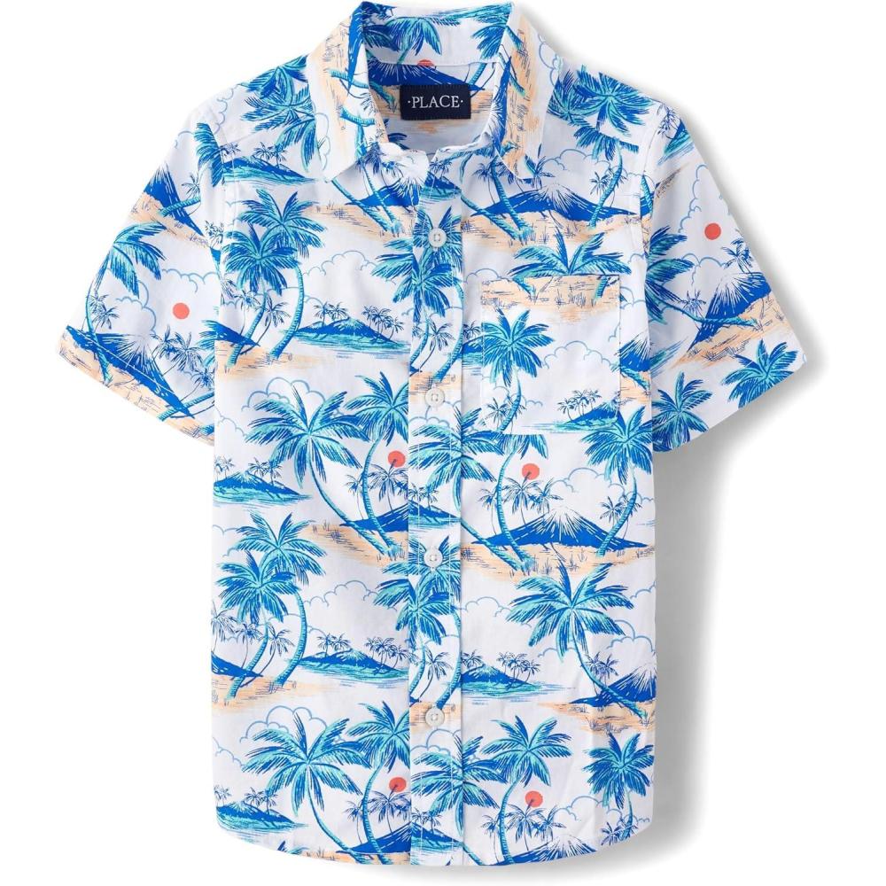 The Children’s Place Boys’ Short Sleeve Poplin Button Down Shirt(Tropical)