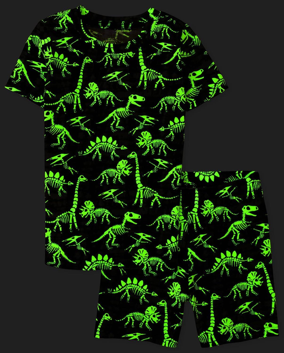 The Children's Place boys Short Sleeve Top and Shorts Snug Fit 100% Cotton 4 Piece Pajama Set(Camo/Dino Glow 2-pack)