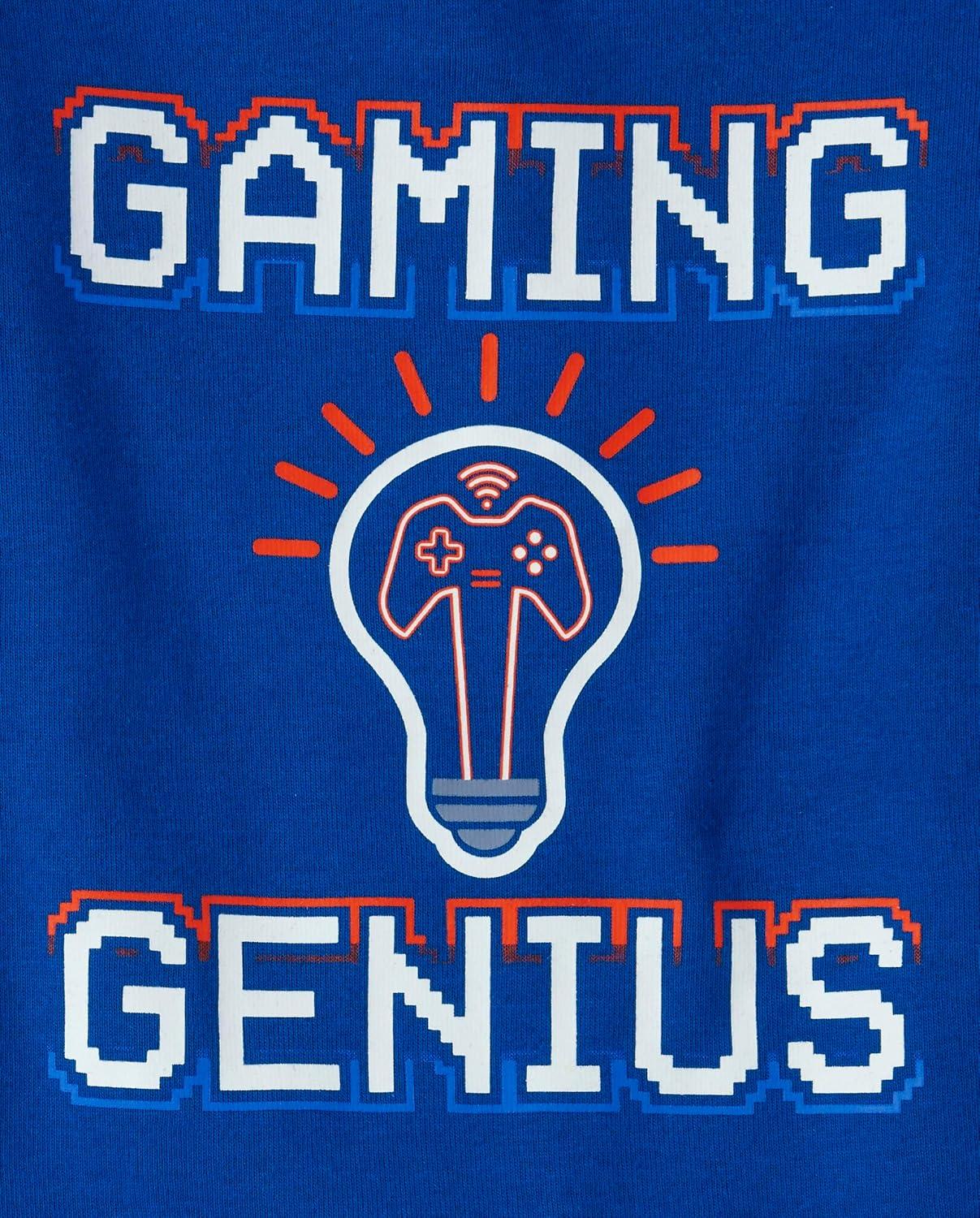 The Children's Place boys Short Sleeve Top and Shorts Snug Fit 100% Cotton 4 Piece Pajama Set(Gaming Genius Glow)