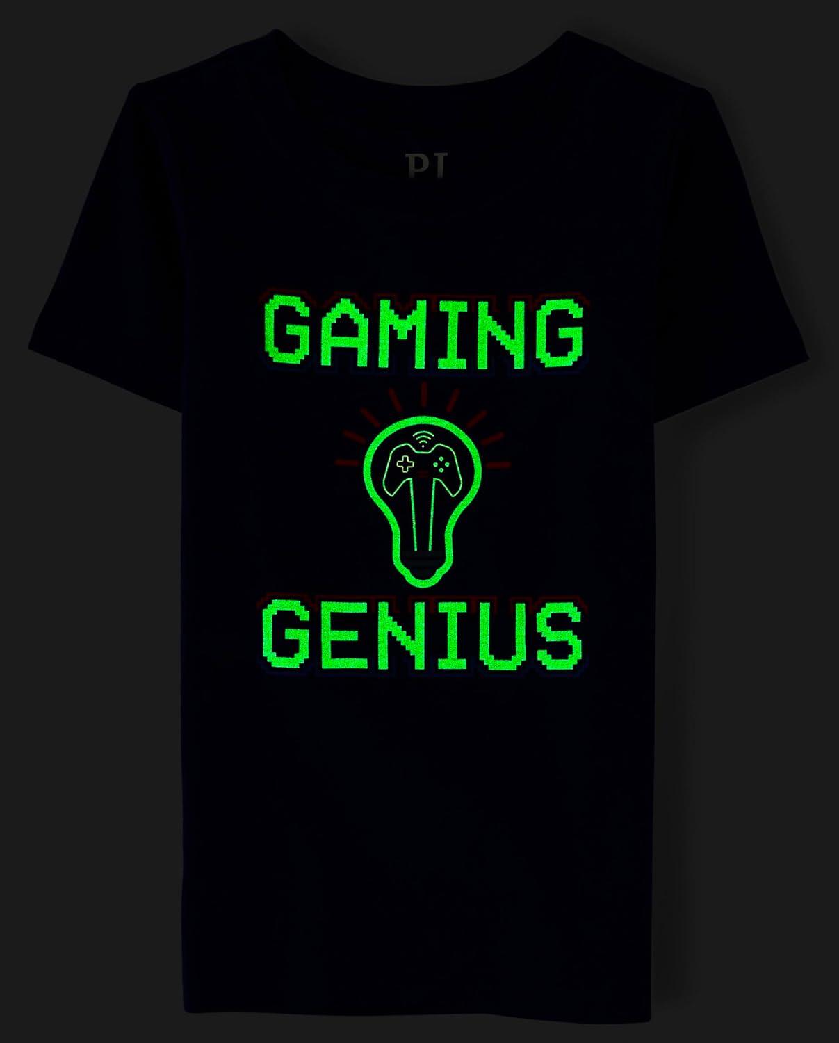 imageThe Childrens Place boys Short Sleeve Top and Shorts Snug Fit 100 Cotton 4 Piece Pajama SetGaming Genius Glow