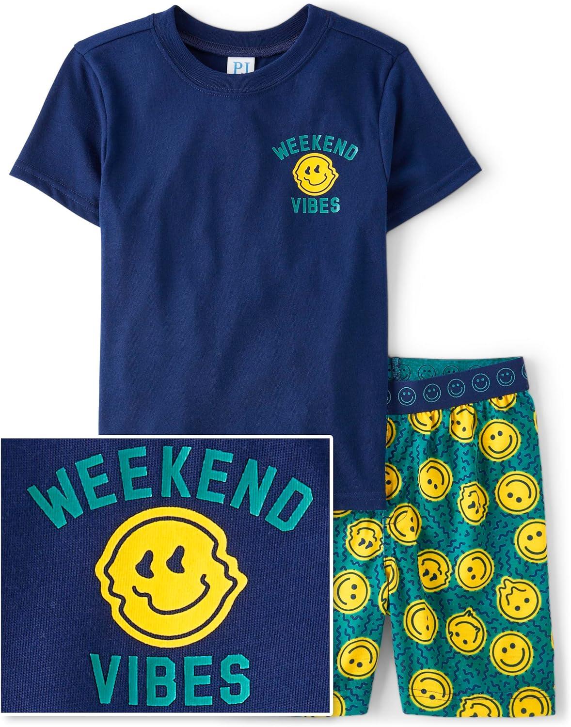 The Children's Place boys Short Sleeve Top and Shorts,2 Piece Pajama Set(Happy Face Vibes)