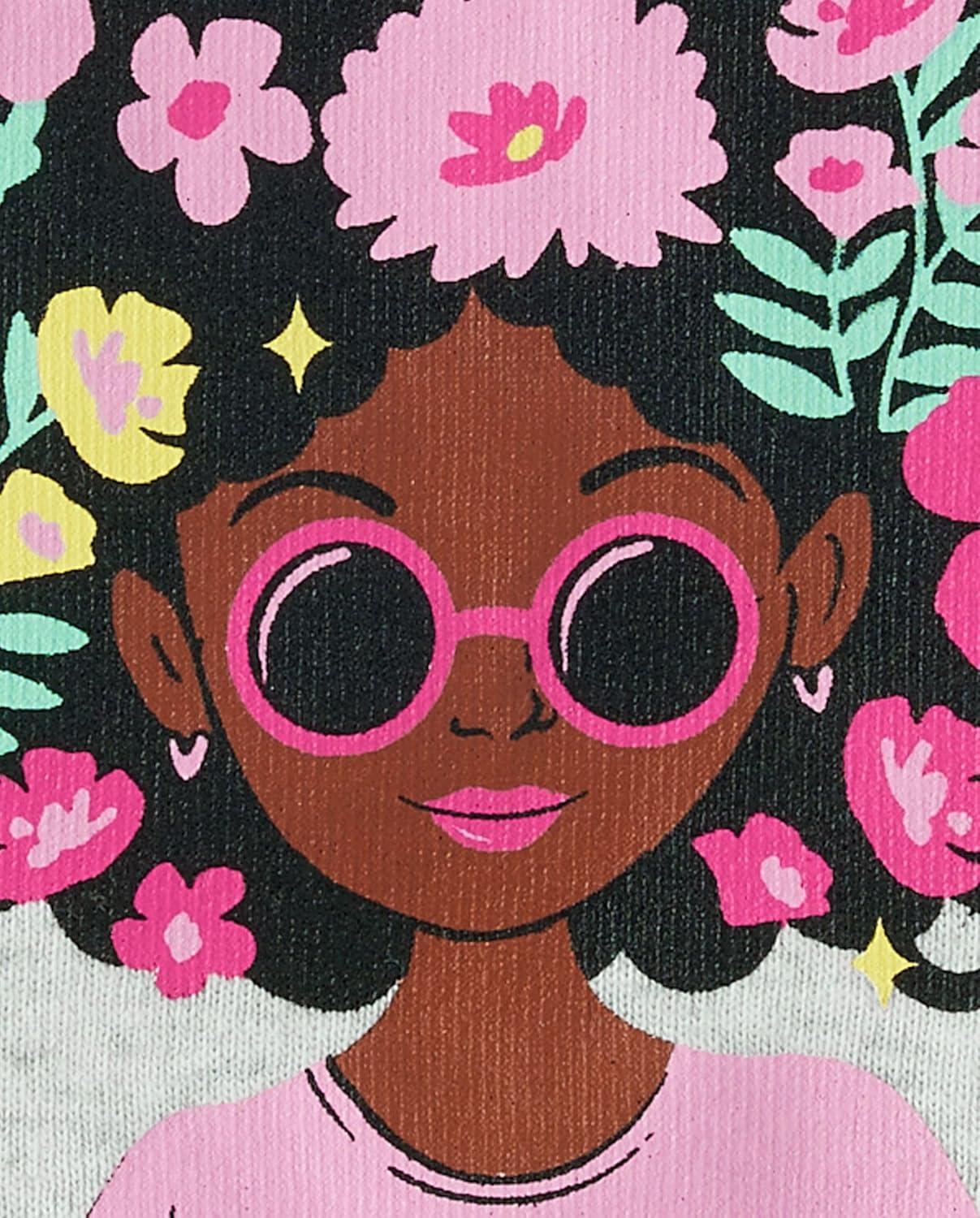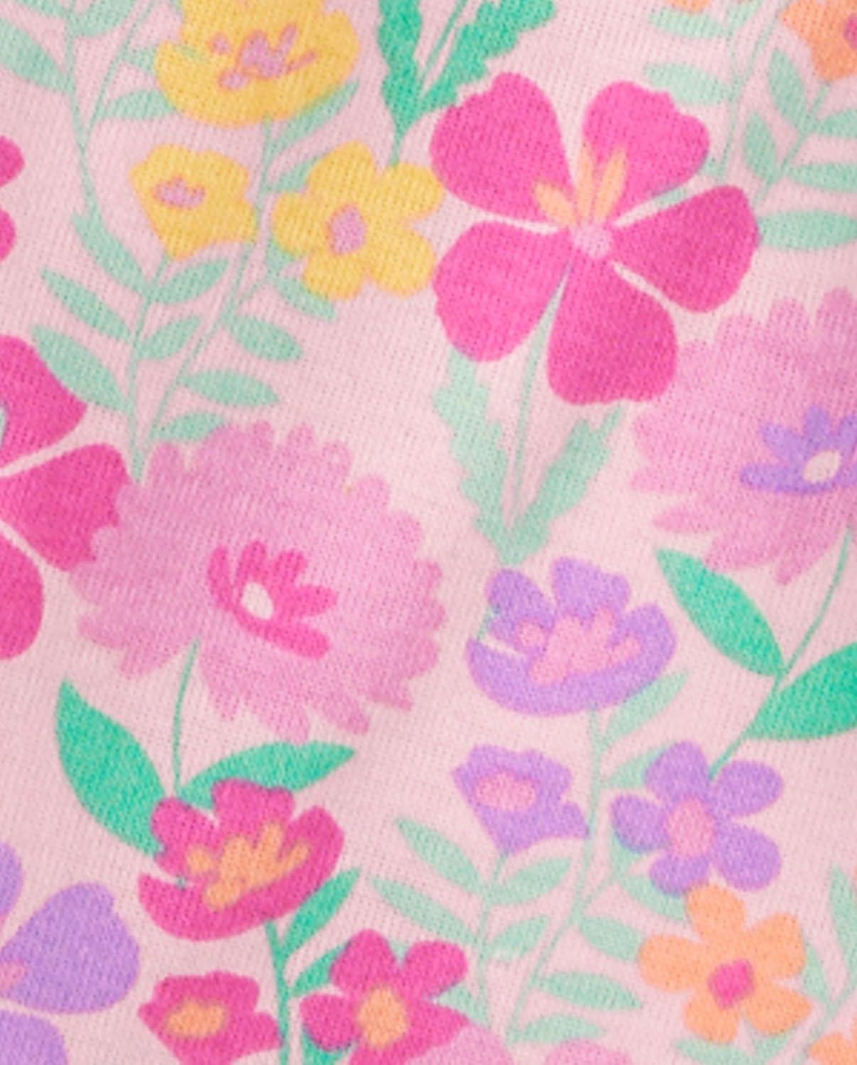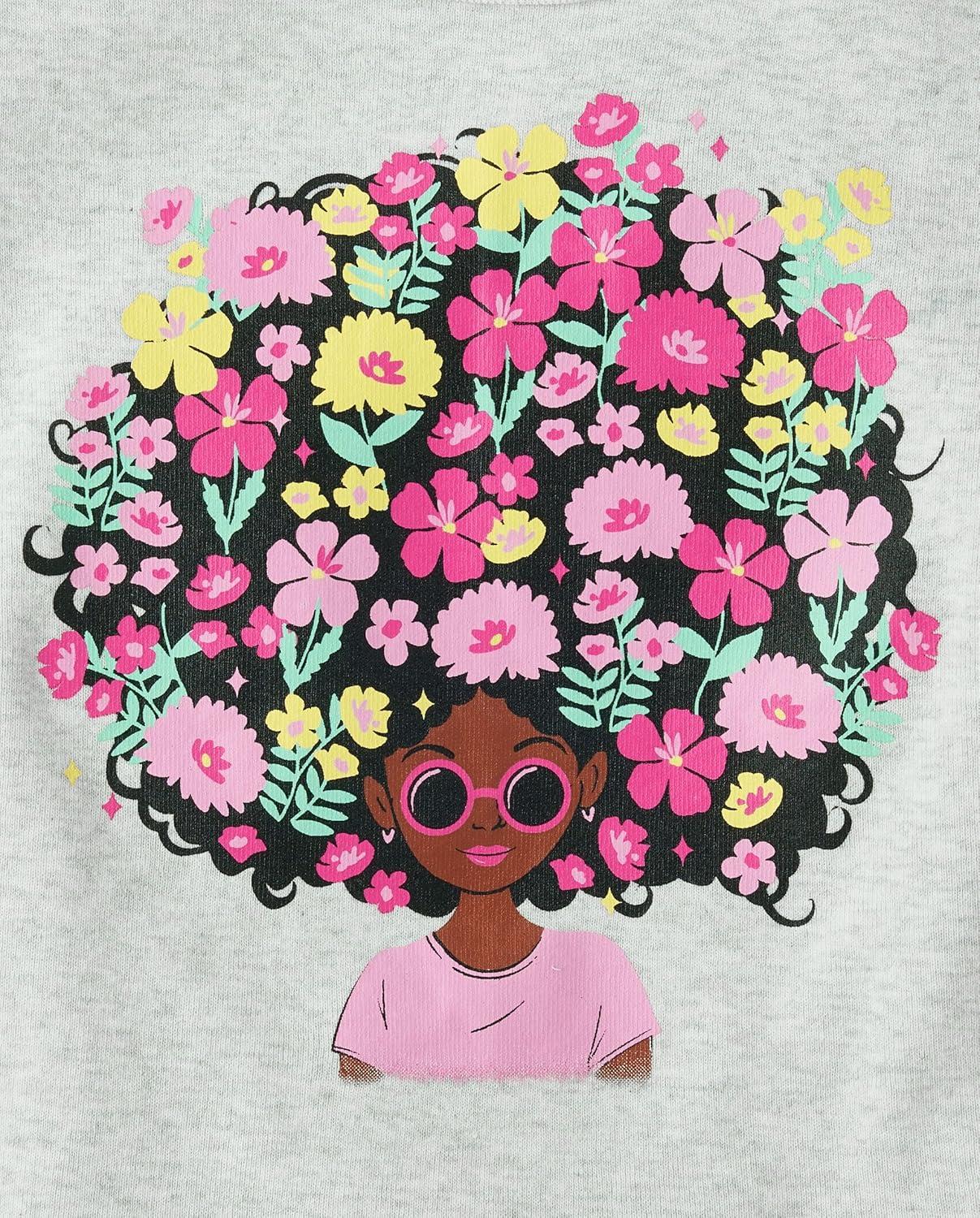 The Children's Place Girls' 100% Cotton Short Sleeve Top and Pants,2 Piece Pajama Set(Floral Cameo)