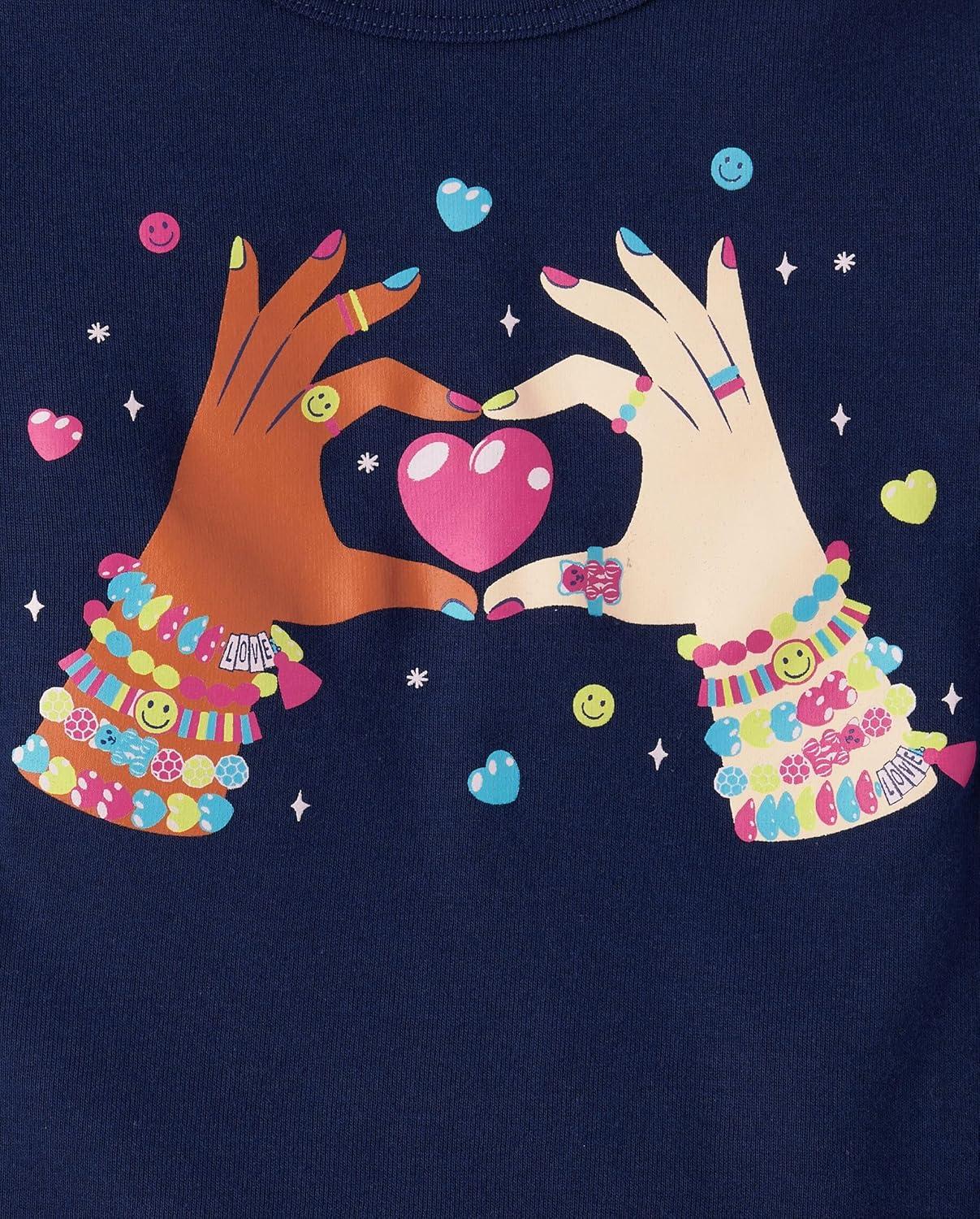 The Children’s Place Girls’ 100% Cotton Short Sleeve Top and Pants,2 Piece Pajama Set(Friendship Bracelet)