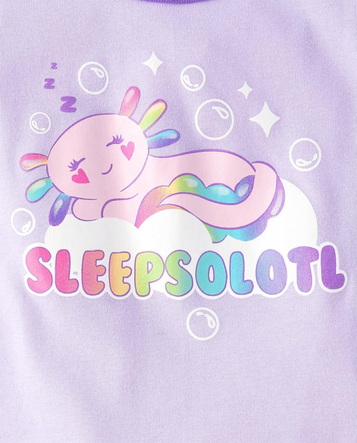 The Children's Place girls 100% Cotton Short Sleeve Top and Shorts 2 Piece Pajama Set(Sleepsolotl)