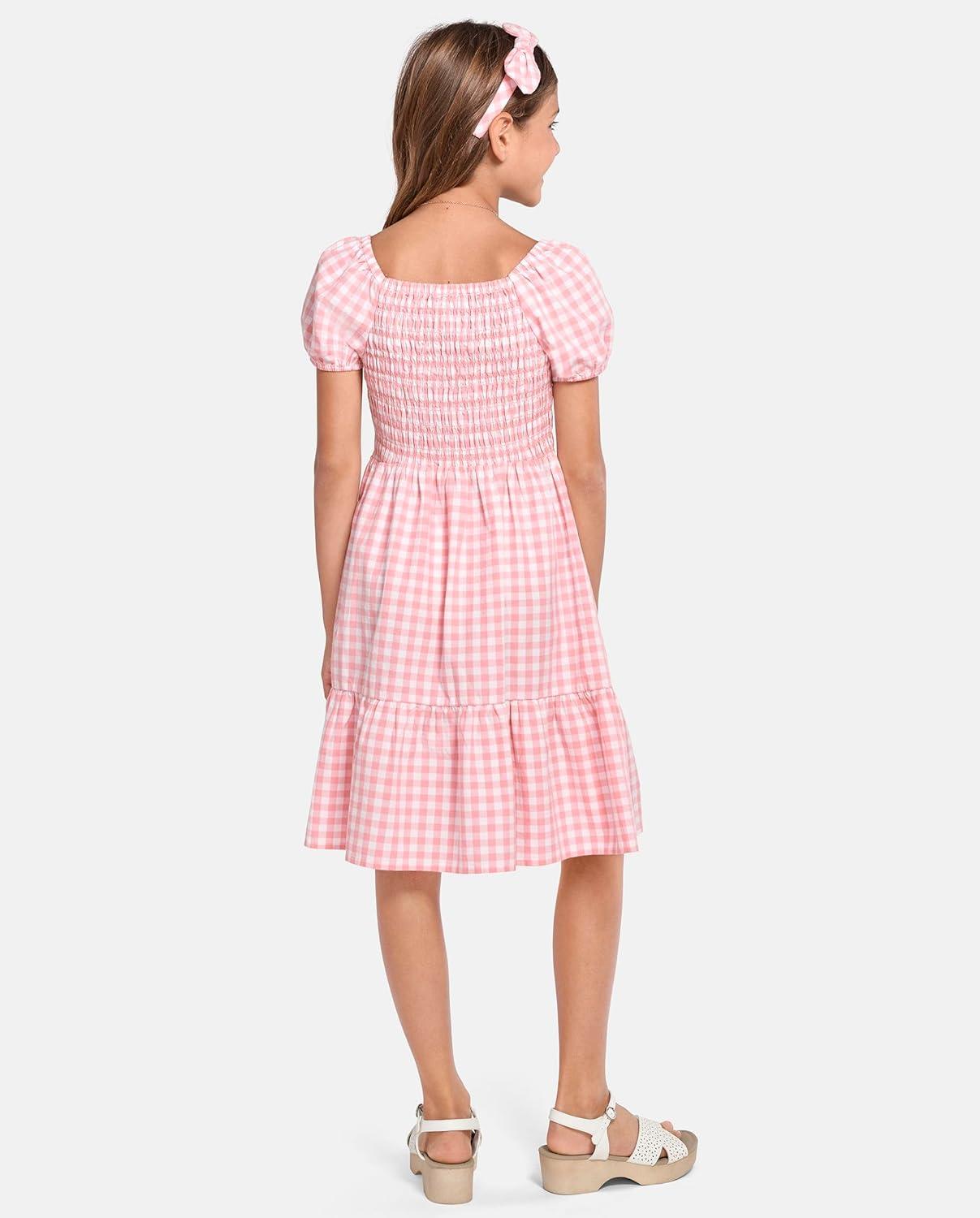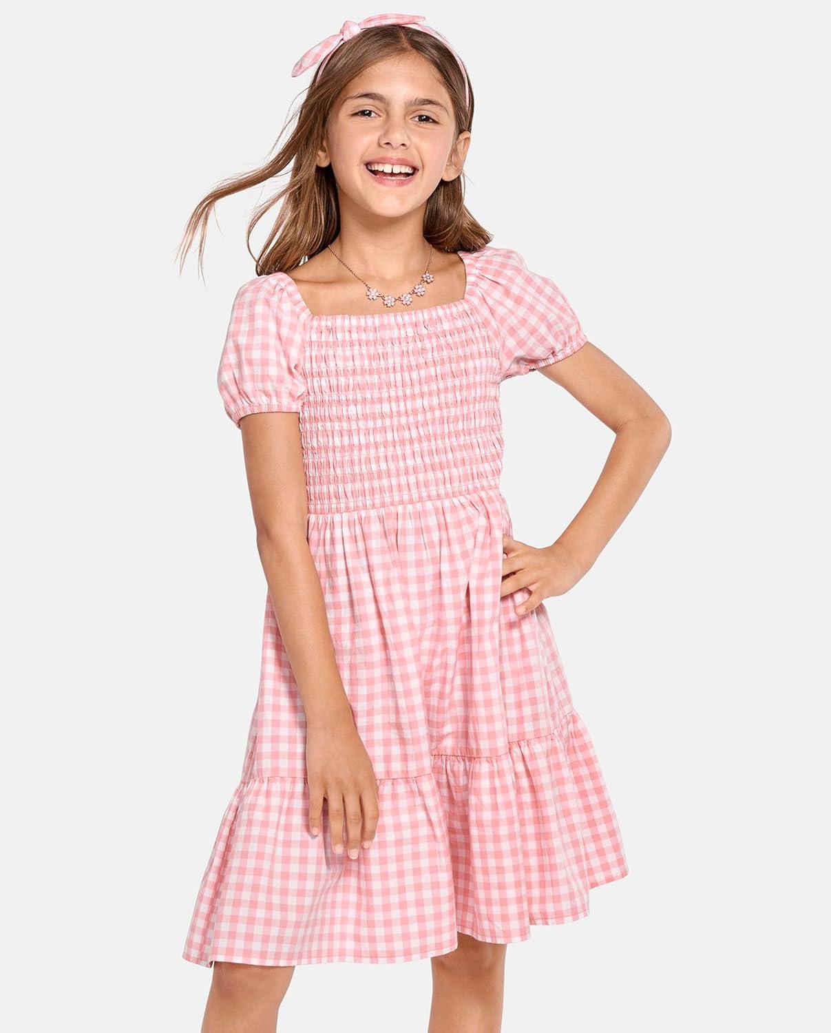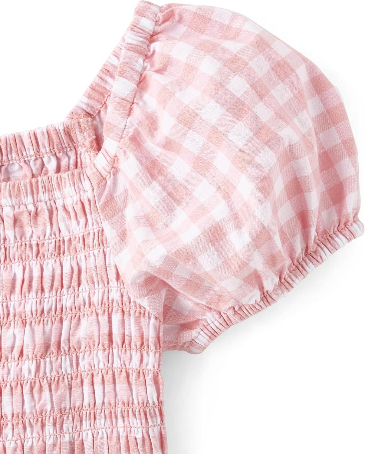 The Children’s Place girls Floral Smocked Babydoll Dress(Pink Gingham)