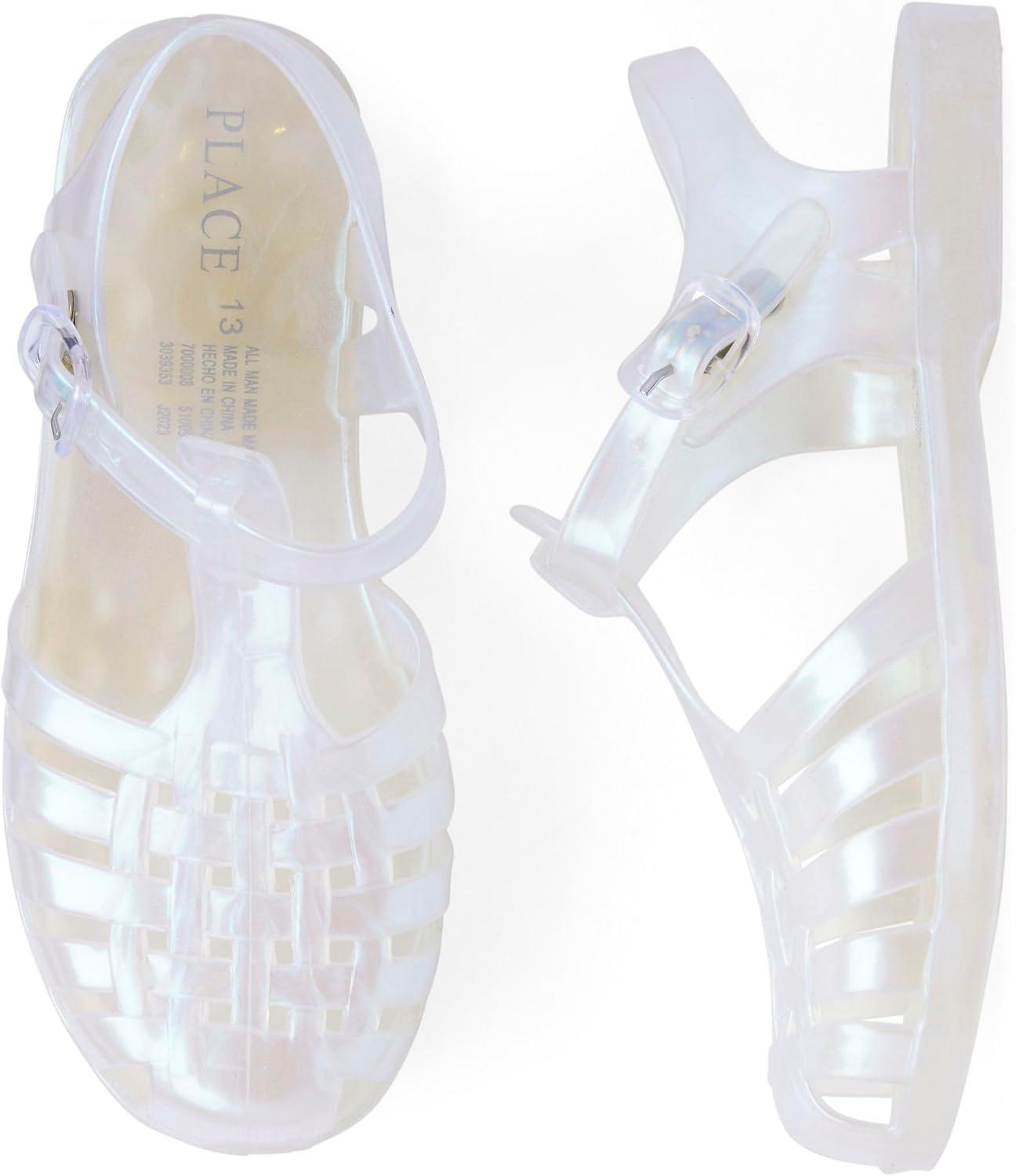The Children’s Place Girls’ Girls Jelly Fisherman Sandals(Clear Silver Glitter)