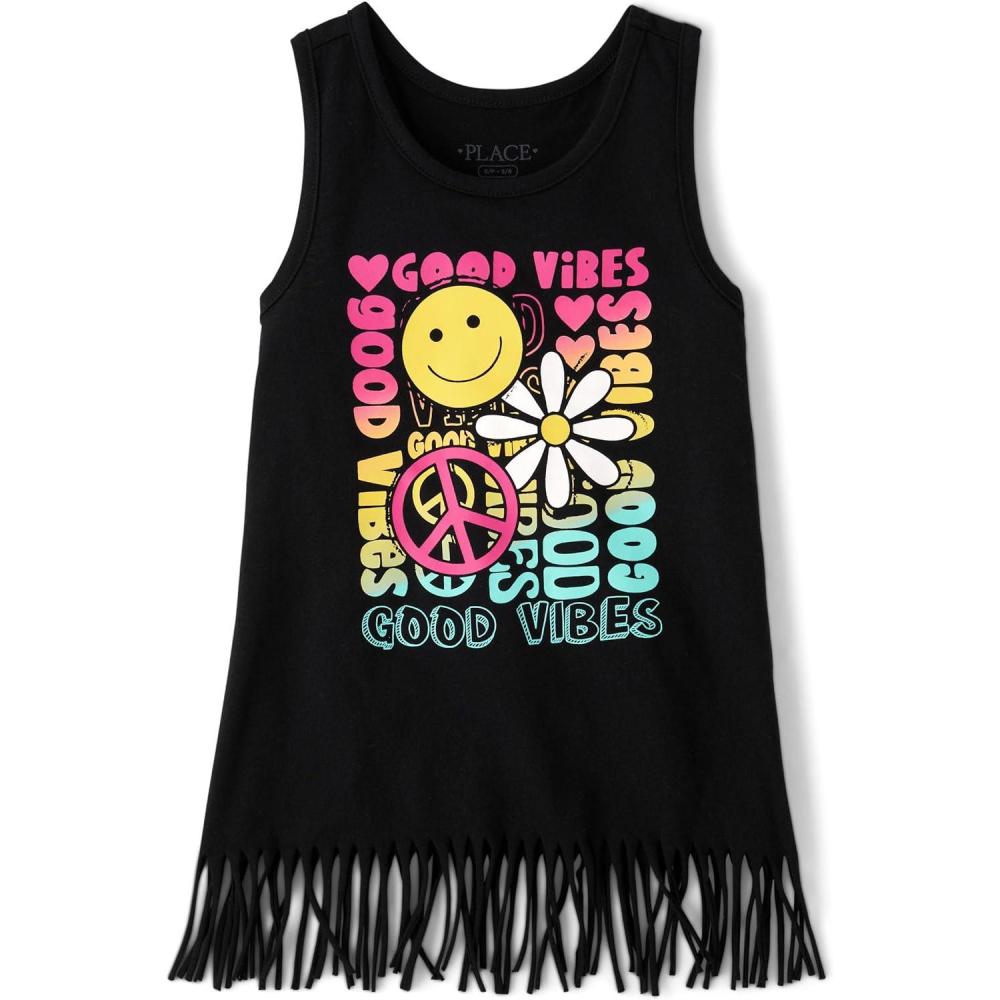 The Children’s Place Girls Graphic Fringe Tank Tops(Good Vibes)