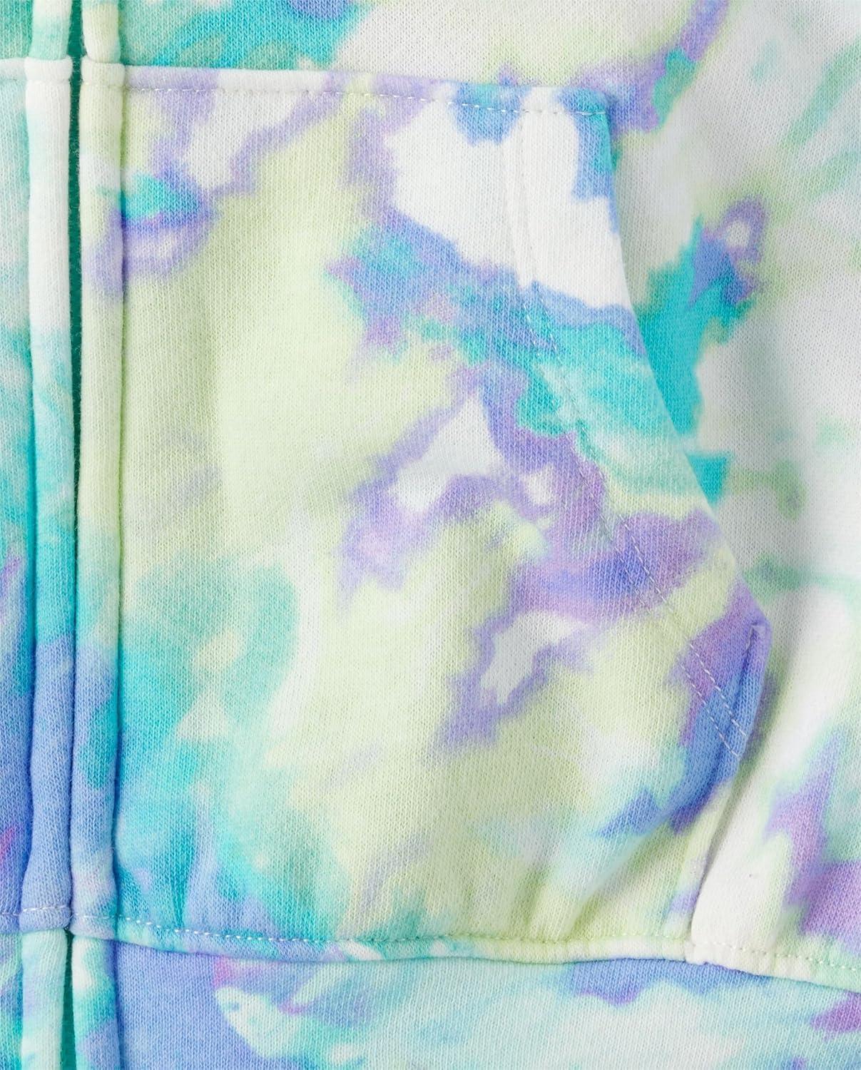 The Children’s Place girls Long Sleeve Hooded Fleece Full Zip Up(Green Glow Tie Dye)