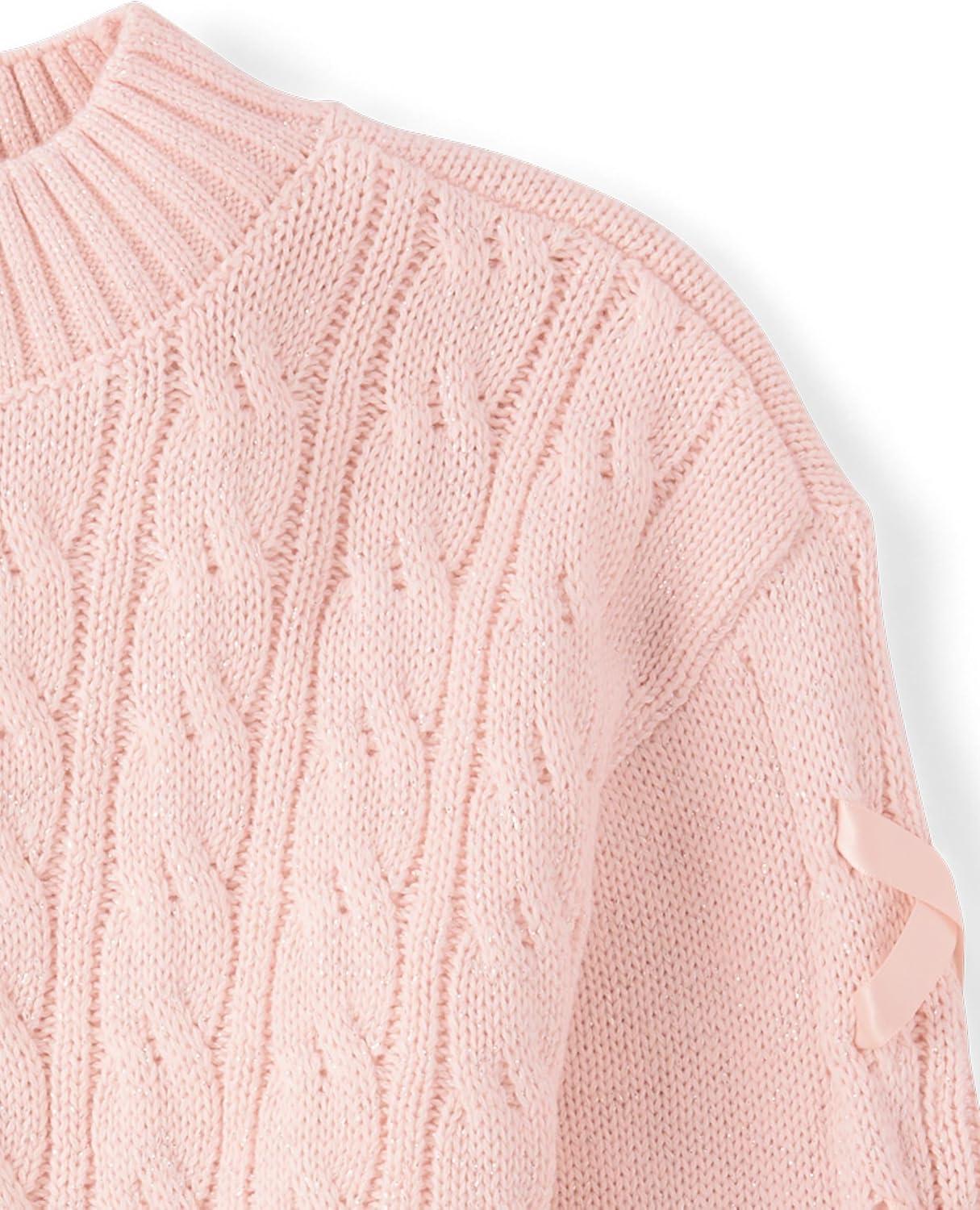 The Children’s Place Girls’ Long Sleeve Pullover Cable Knit Sweater(Primrose Ribbon)