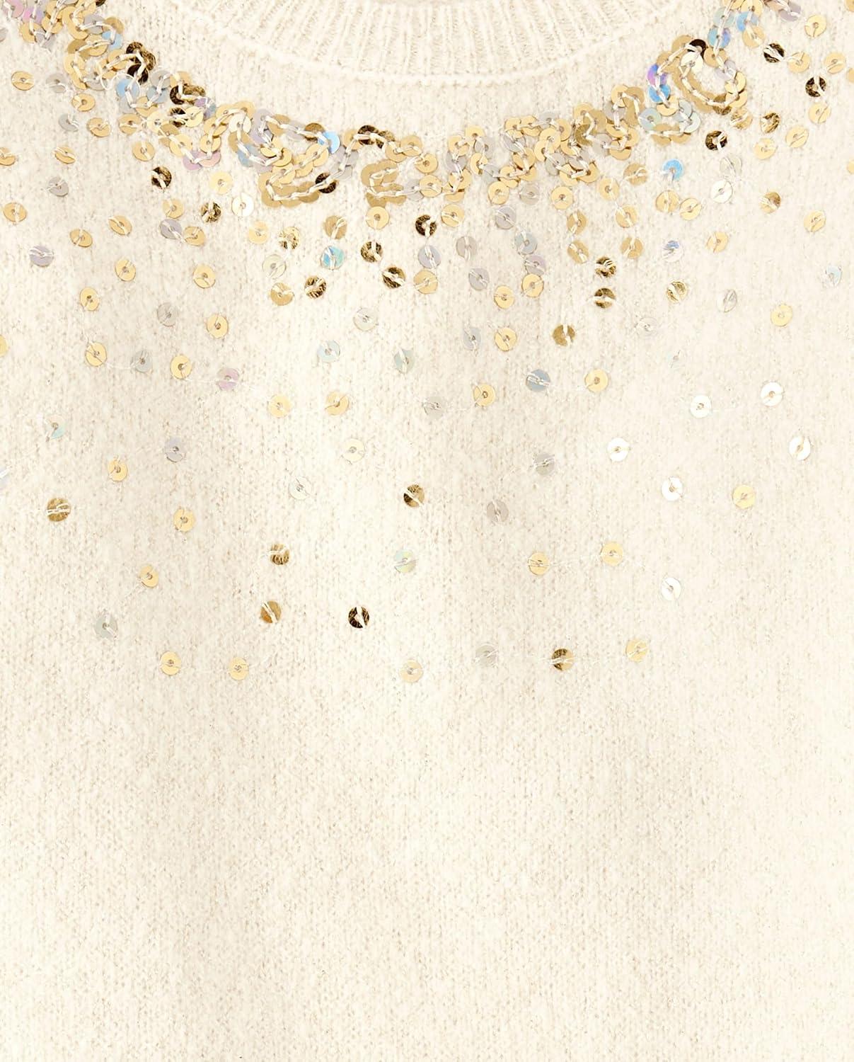 The Children’s Place Girls Long Sleeve Sweater Dress(Beaded White Daisy)