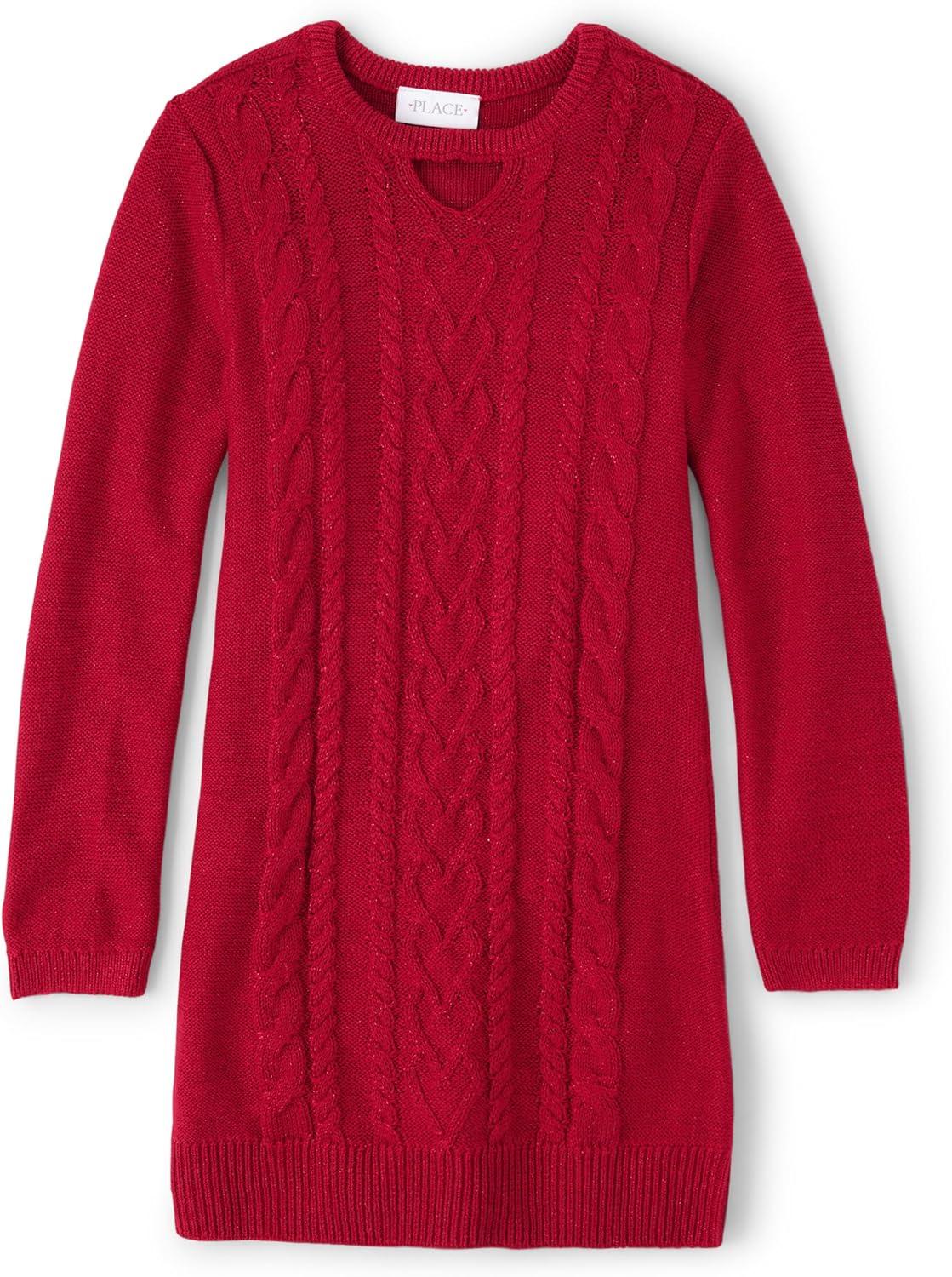 The Children's Place Girls Long Sleeve Sweater Dress(Cable Knit Red)