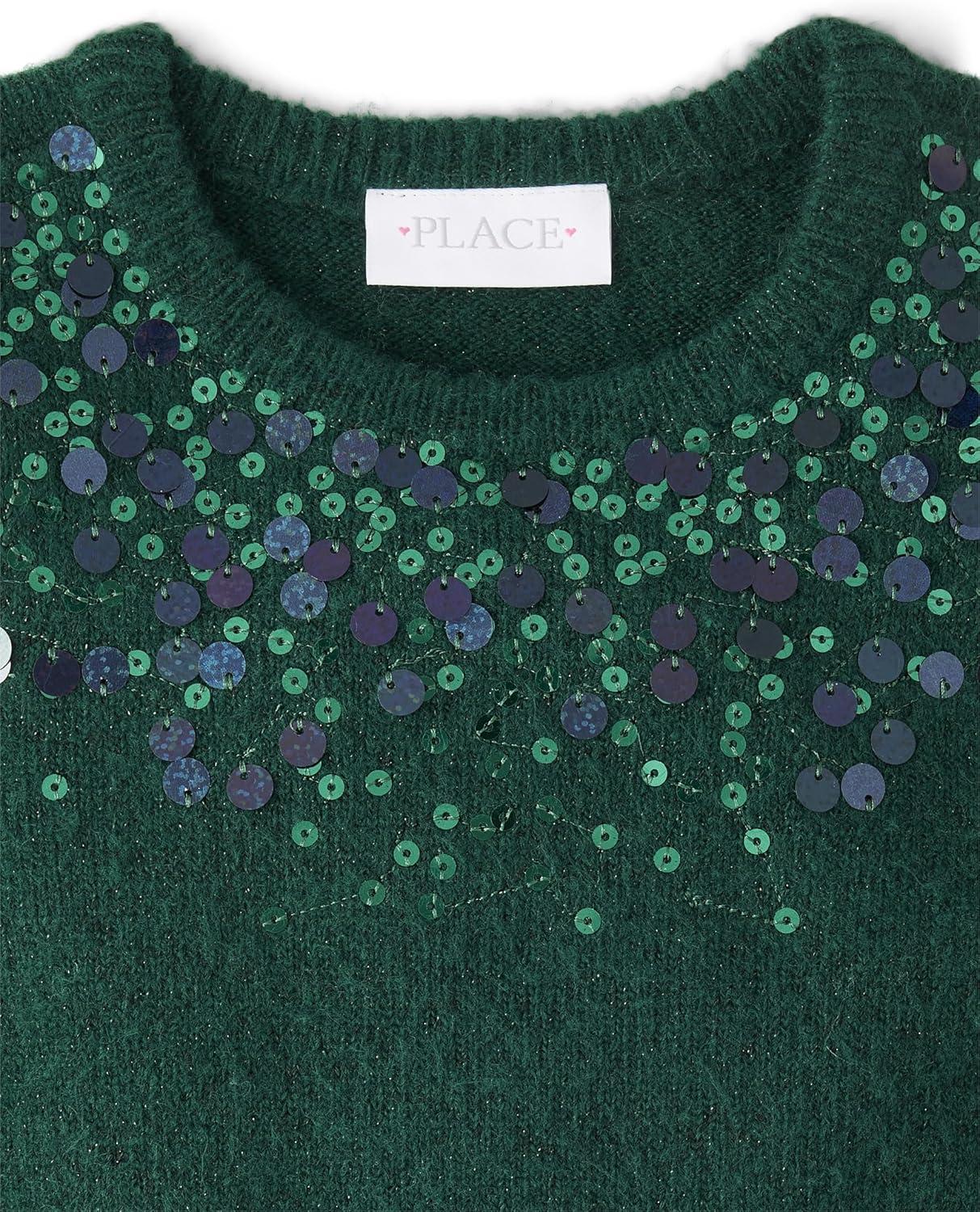 The Children's Place Girls Long Sleeve Sweater Dress(Sequin Spruceshade)