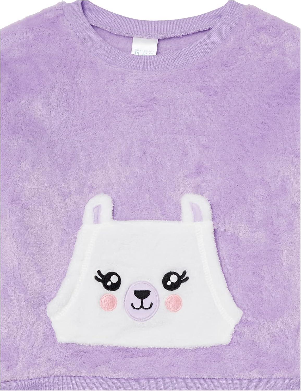 The Children’s Place girls Long Sleeve Top and Bottoms Cozy Fleece 2 Piece Pajama Set(Purple Llama)