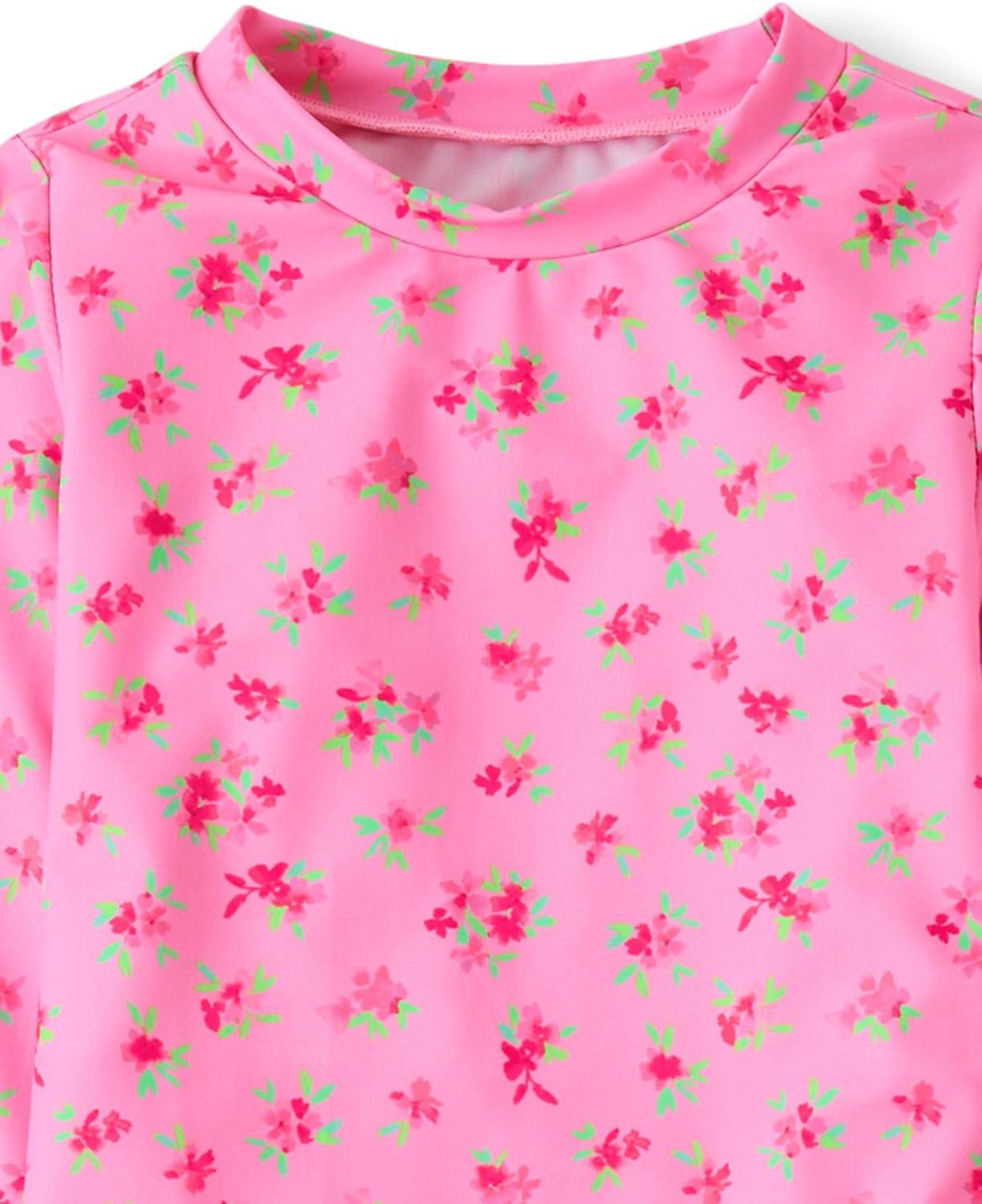 The Children’s Place Girls’ Rashguard and Swimsuit Set(Neon Pink 3-piece)