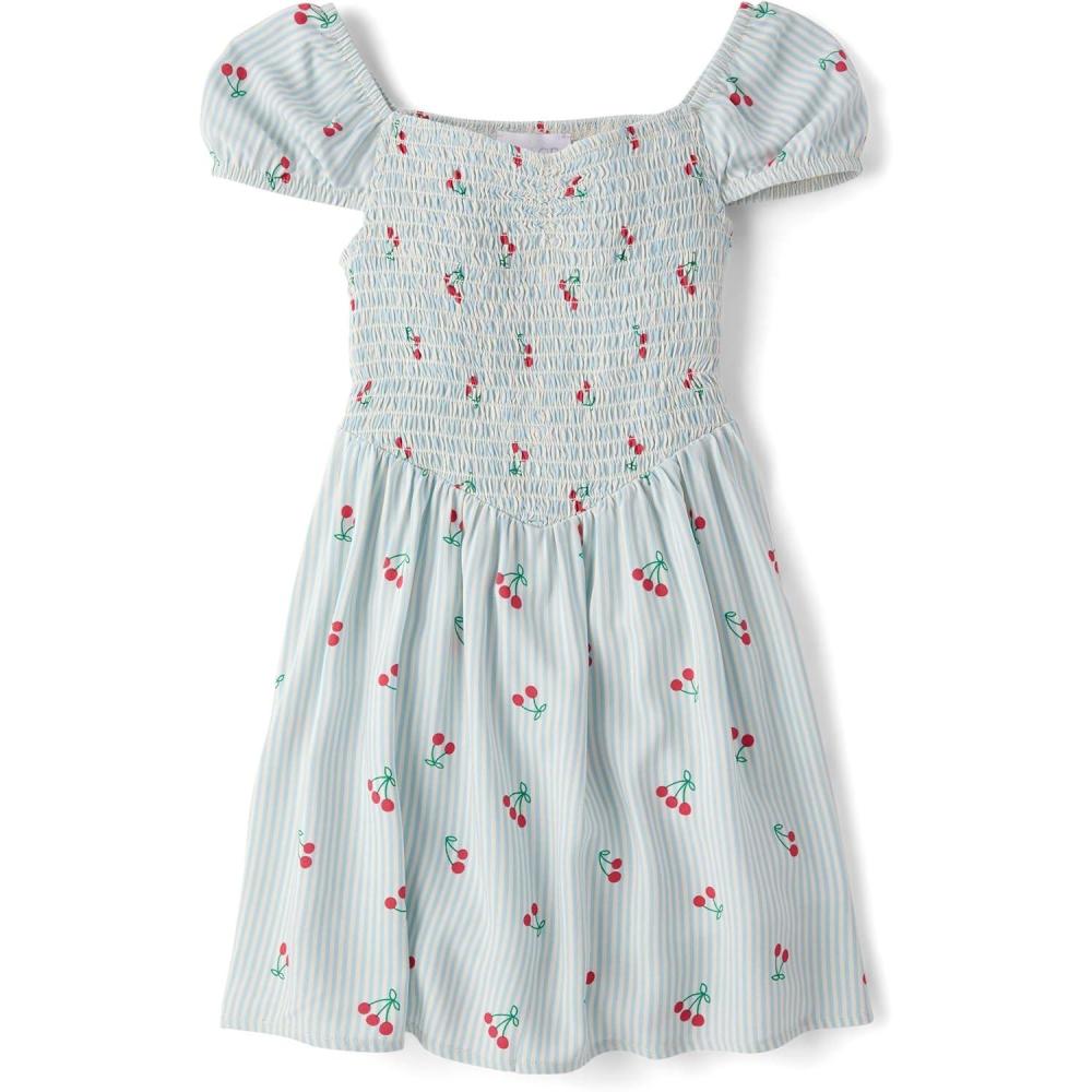 The Children’s Place Girls’ Short Sleeve Dressy Dress(Chalk Blue Cherries)