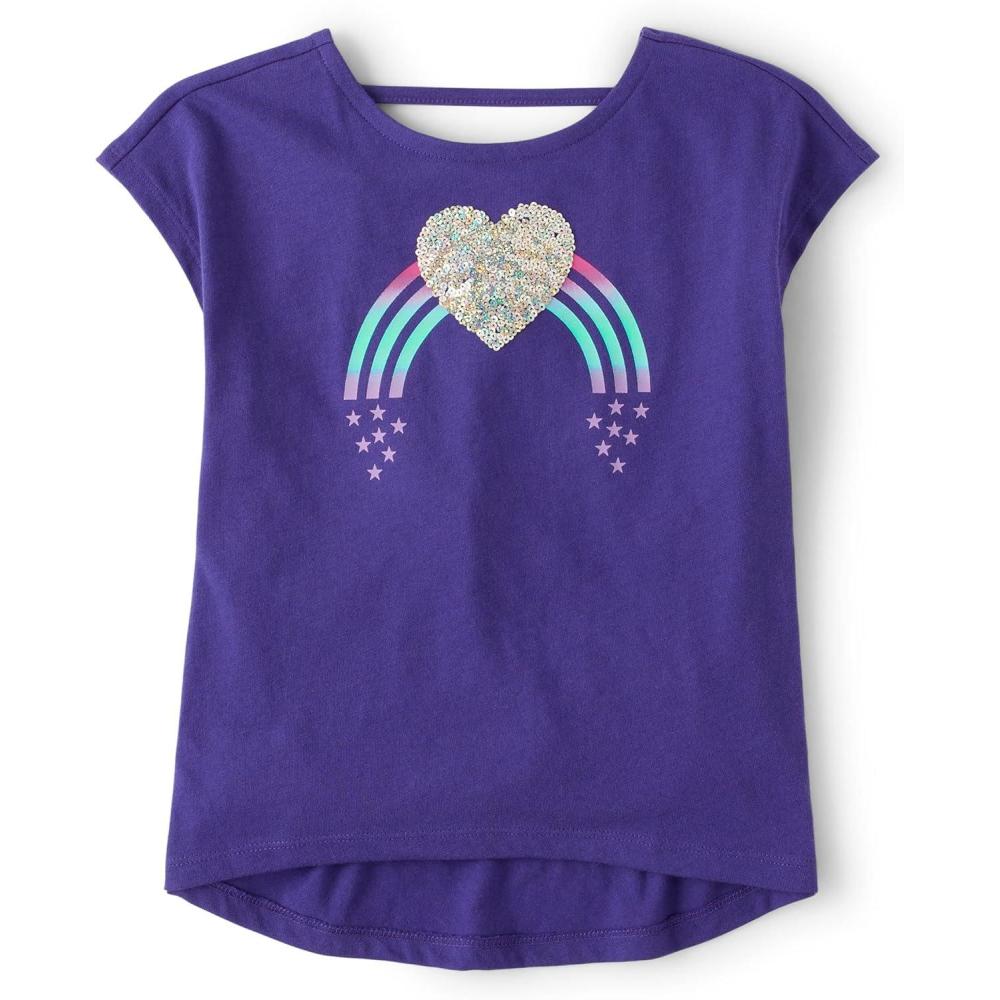 The Children’s Place girls Short Sleeve Graphic High Low Top(Solar Storm)