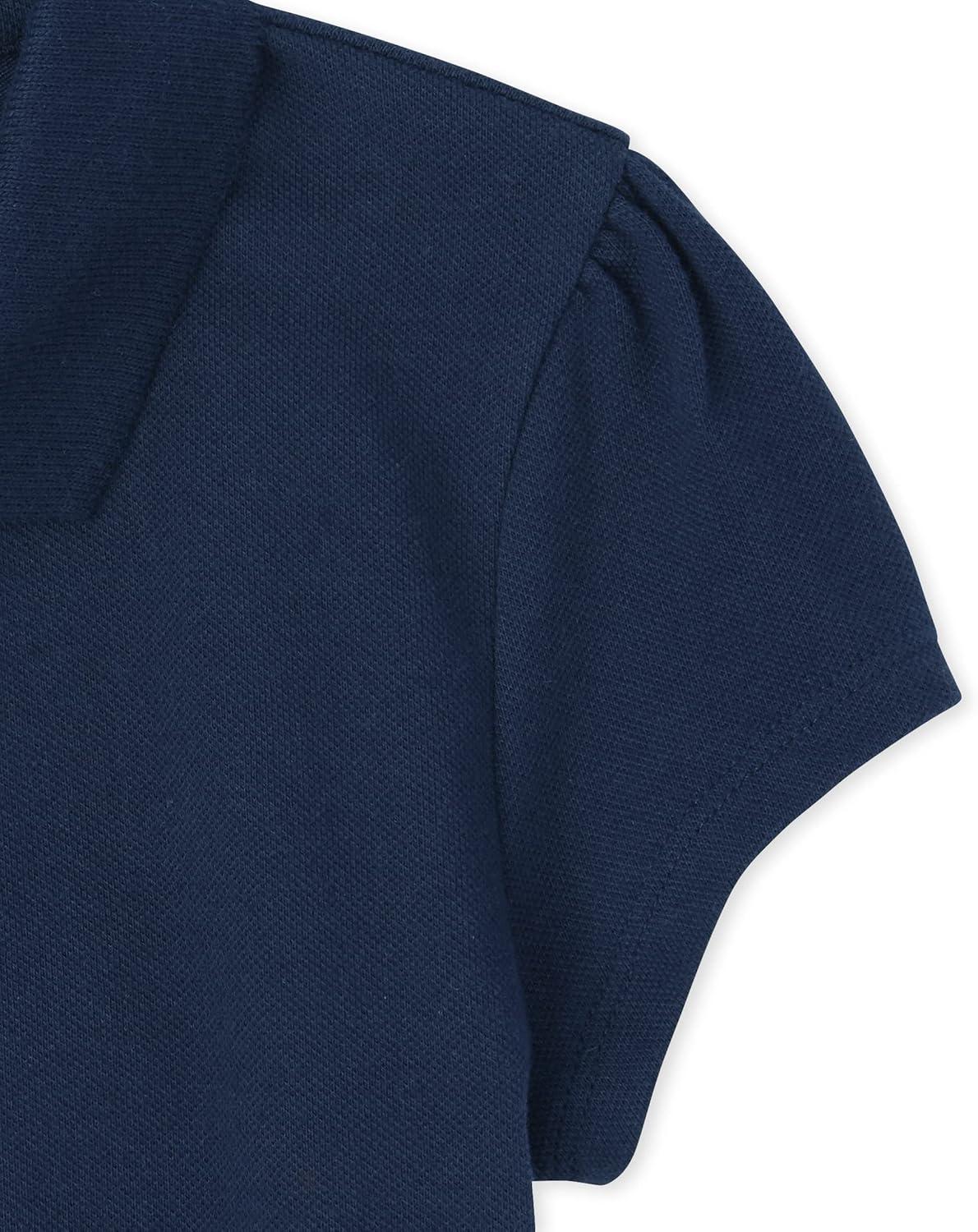 The Children’s Place Girls’ Short Sleeve Ruffle Pique Polo, 6 Pack(Tidal/Red/White)