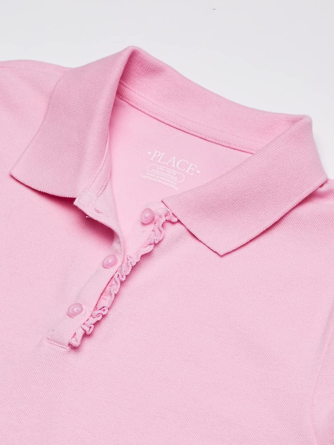 The Children’s Place Girl’s Short Sleeve Ruffle Pique Polo Shirt(Sparkle Pink Single)