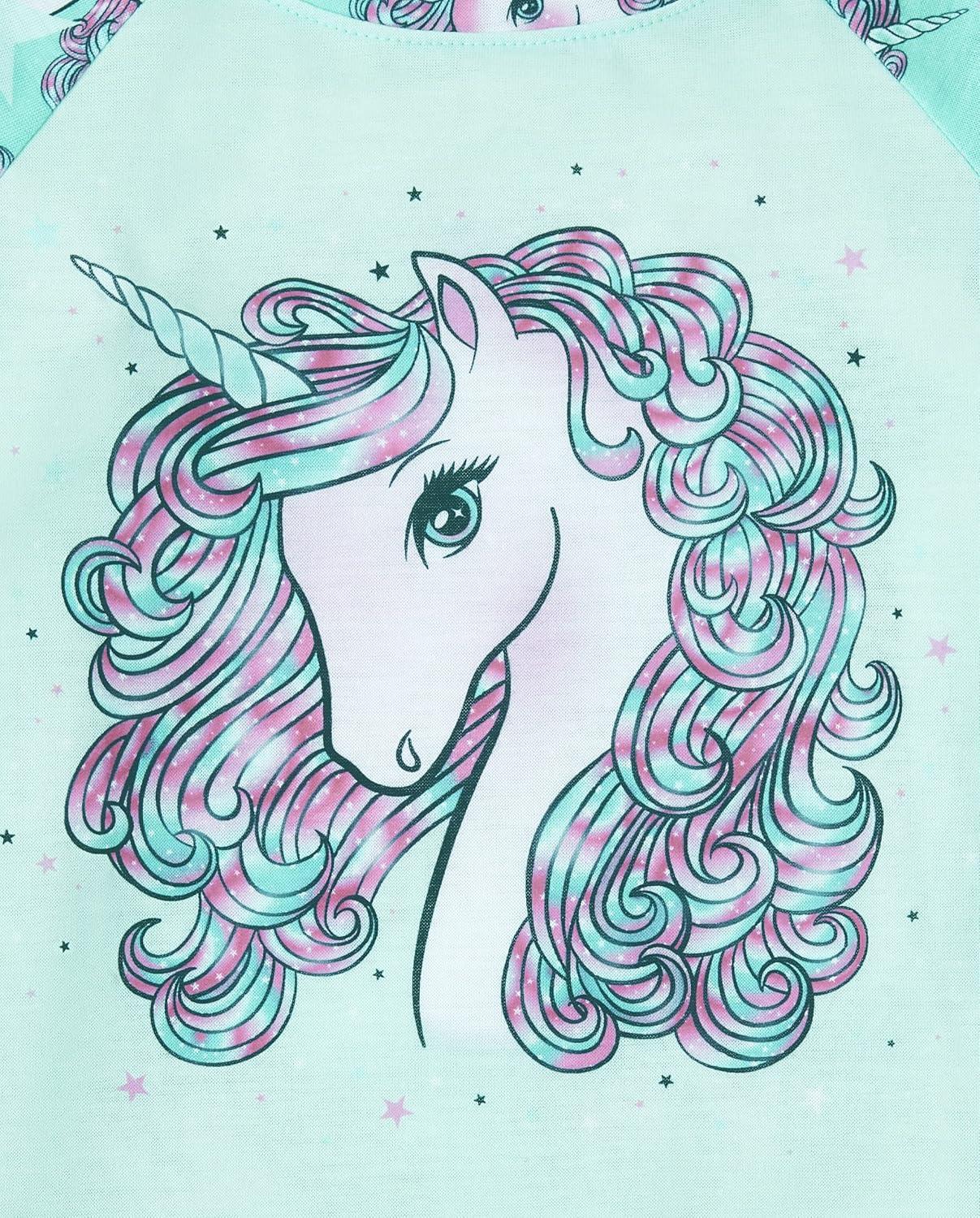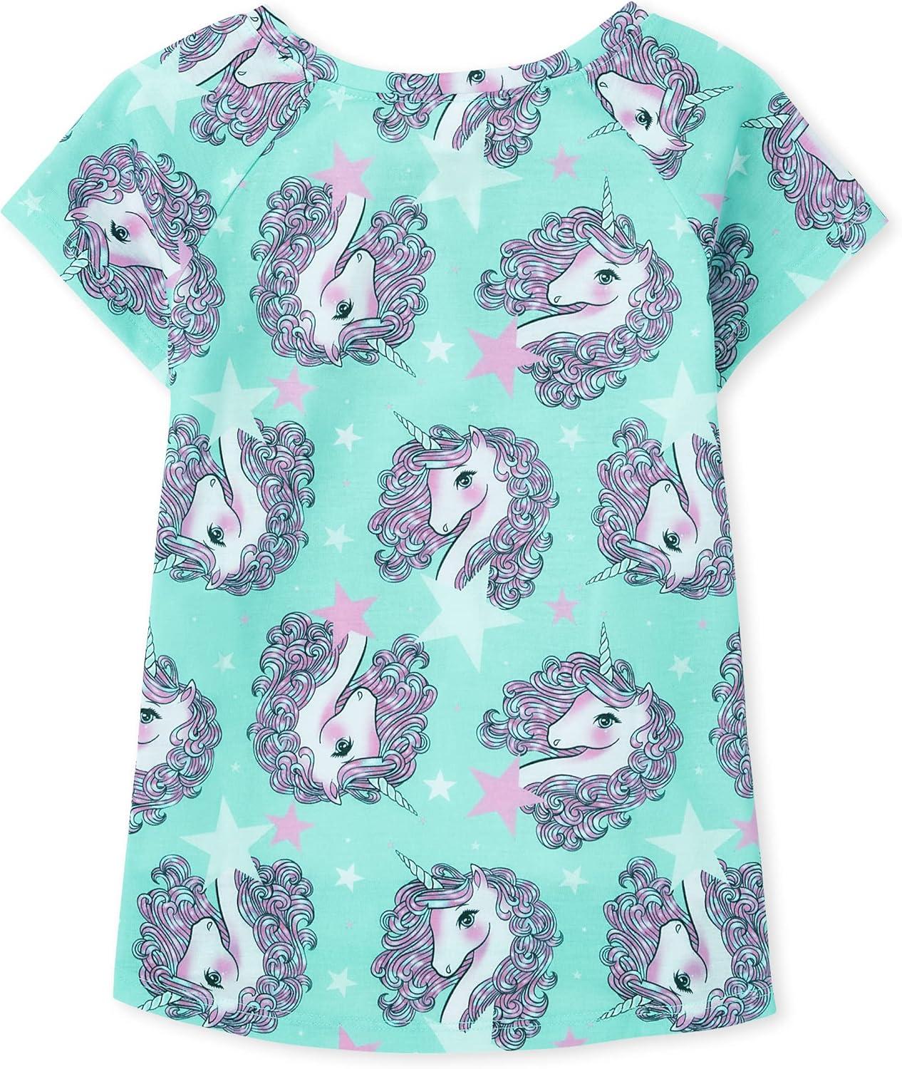 The Children’s Place girls Short Sleeve Top and Pants,2 Piece Pajama Set(Unicorn Graphic)