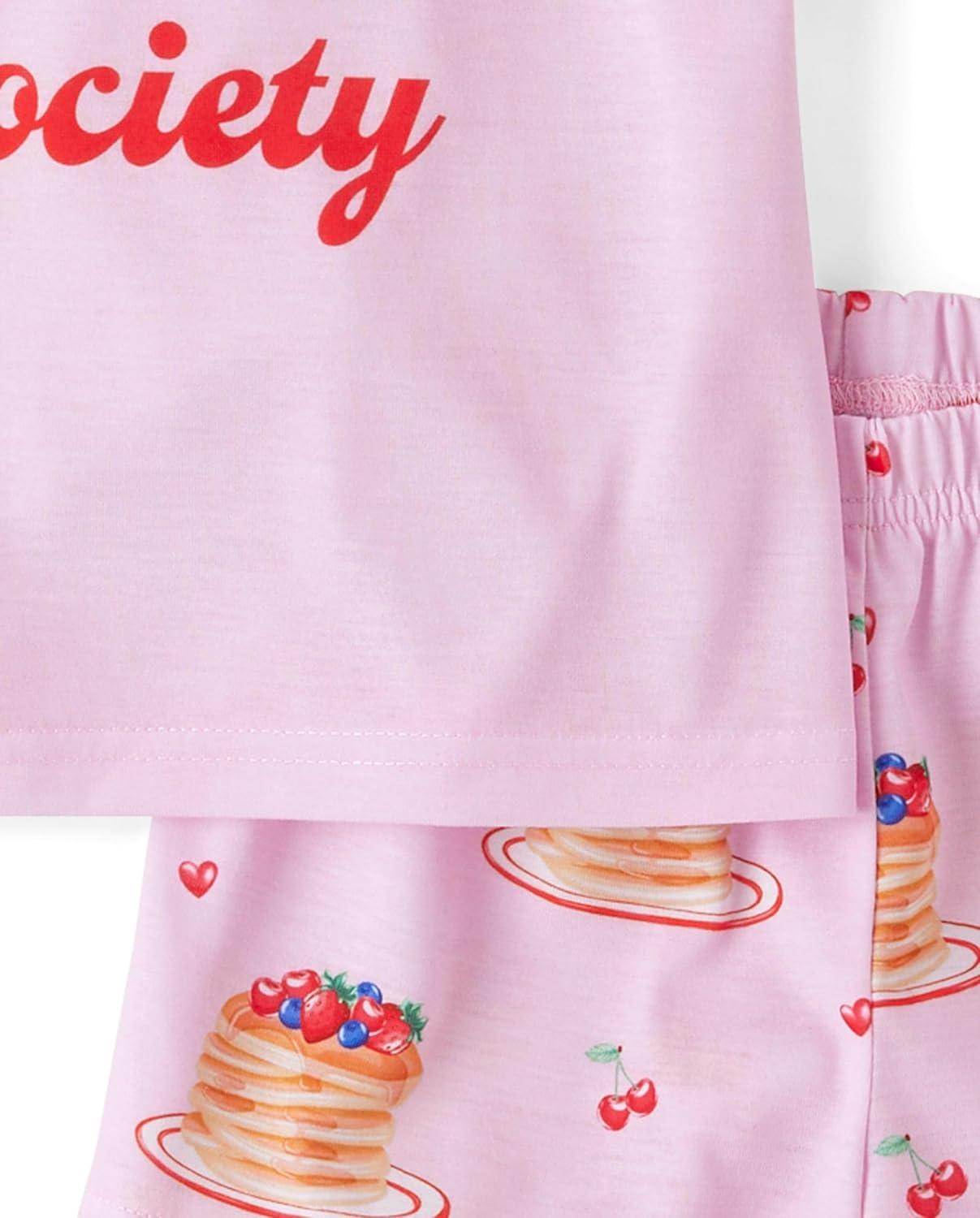 The Children’s Place girls Sleeve Top and Shorts,2 Piece Pajama Set(Pancake Society)
