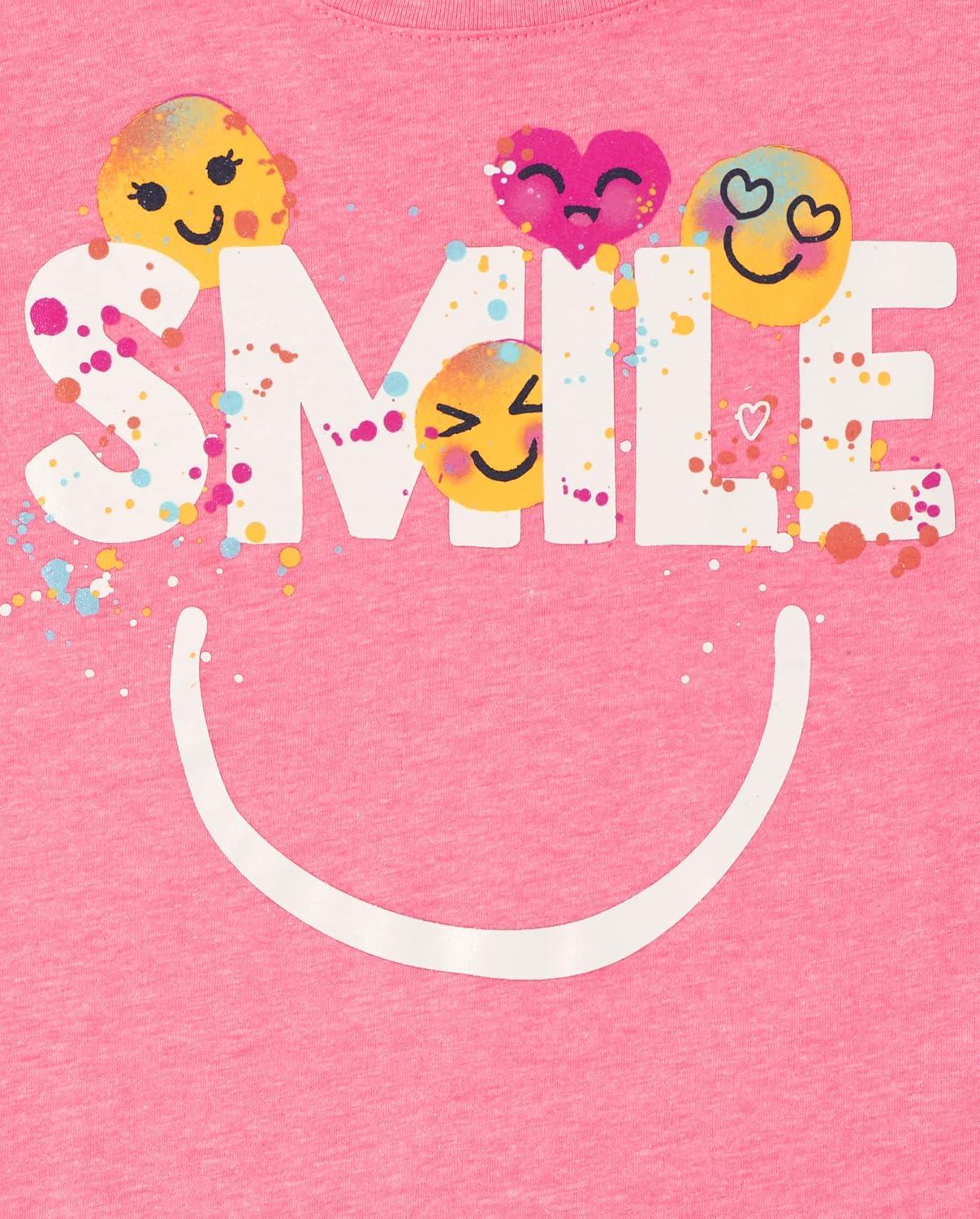 The Children's Place Girls' Sports,Trends,Icons Short Sleeve Graphic T-Shirts,3 Pack(Be Happy/Smile/Kindness Matters)