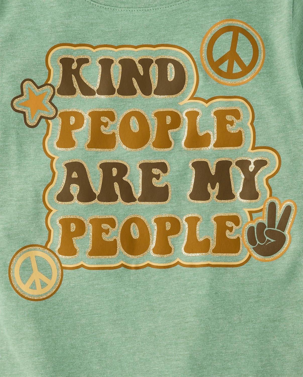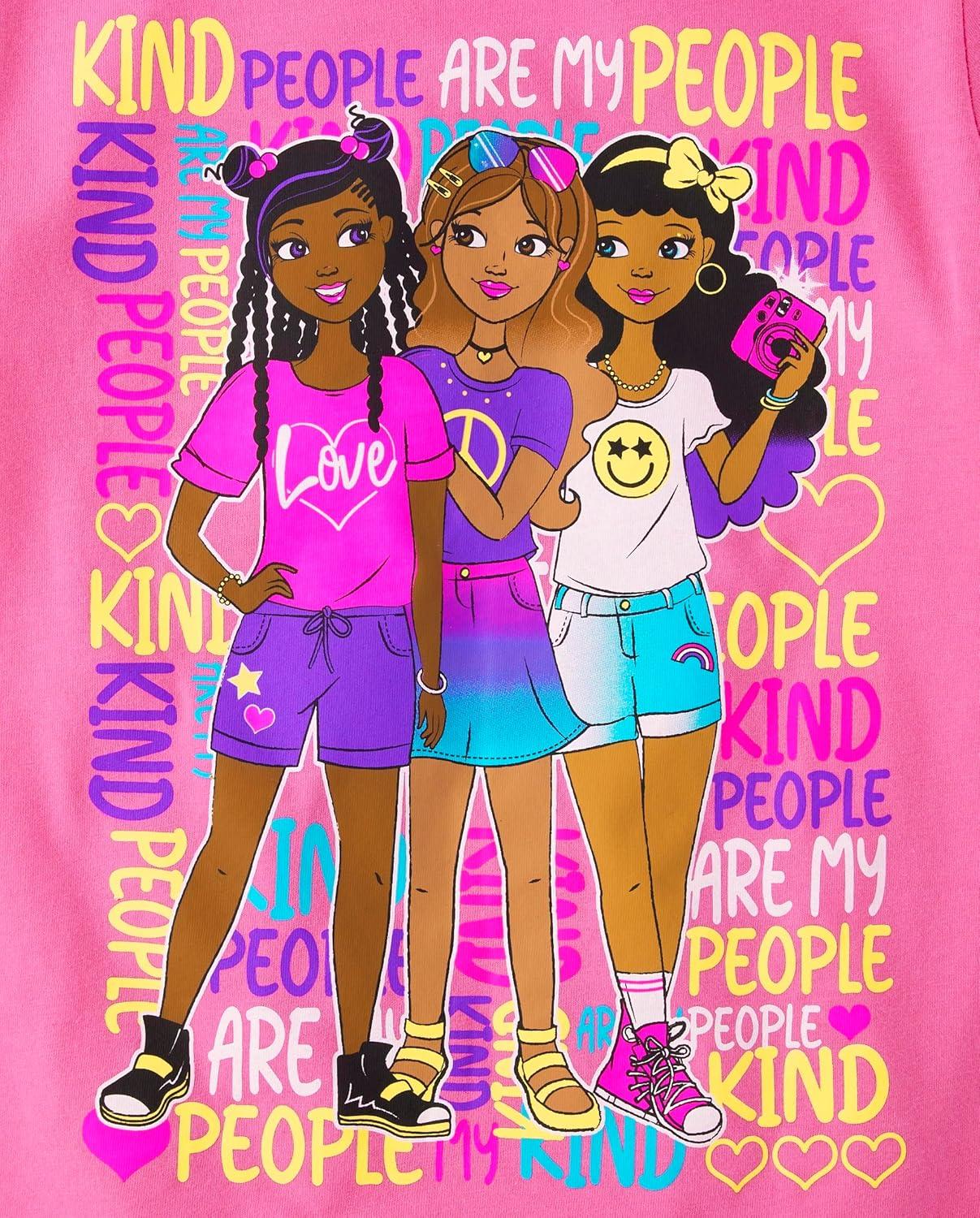 The Children's Place Girls Sports,Trends,Icons Short Sleeve Graphic T-Shirts,3 Pack(Girl/Peace/Kind People)