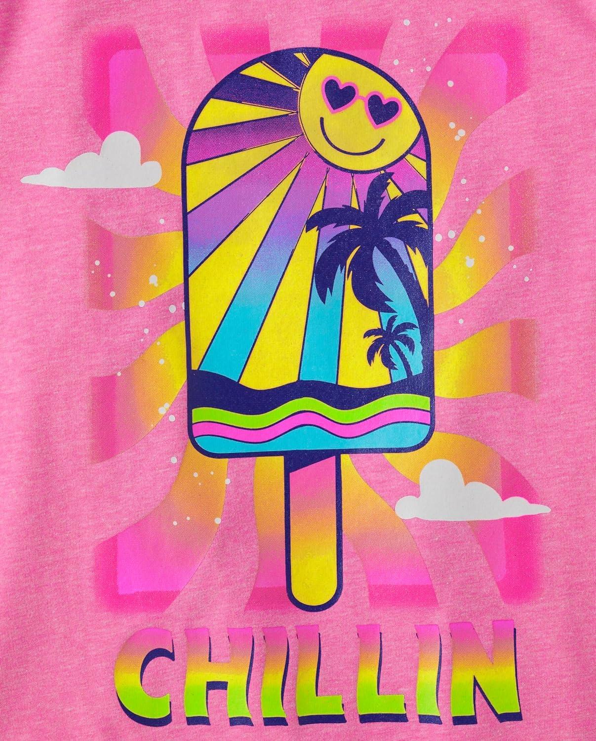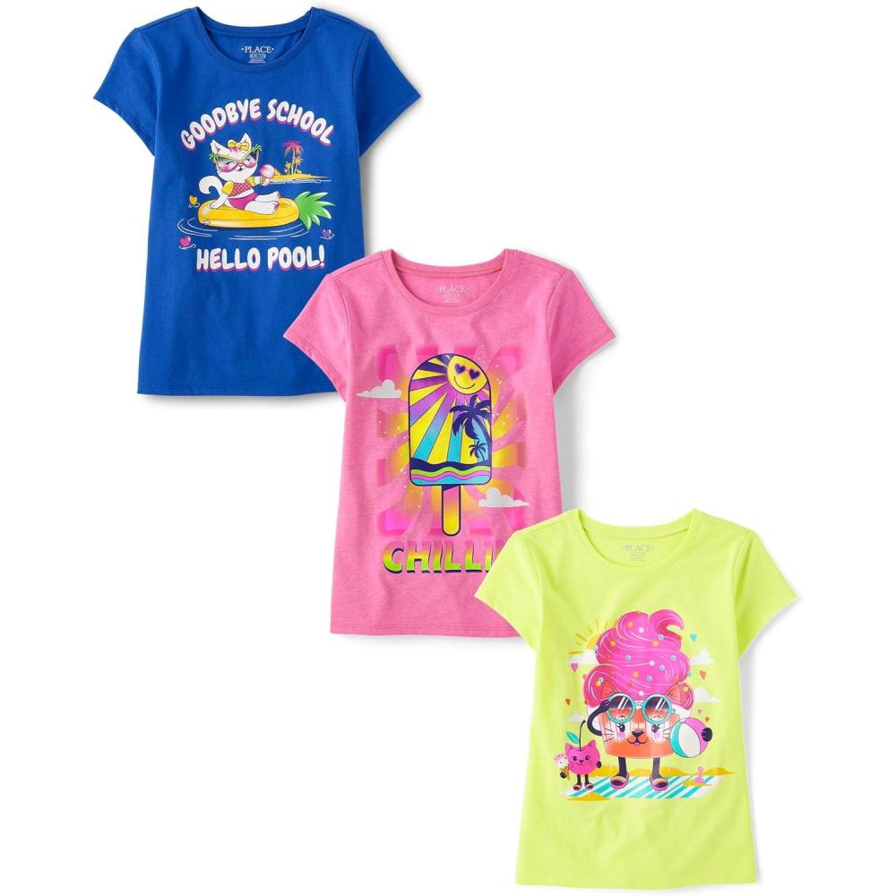 The Children's Place Girls Sports,Trends,Icons Short Sleeve Graphic T-Shirts,3 Pack(Hello Pool/Chillin/Cat Cupcake)