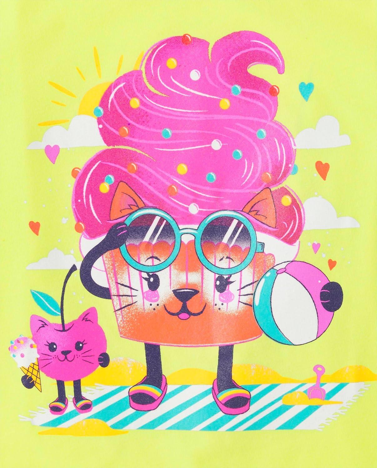 imageThe Childrens Place Girls SportsTrendsIcons Short Sleeve Graphic TShirts3 PackHello PoolChillinCat Cupcake