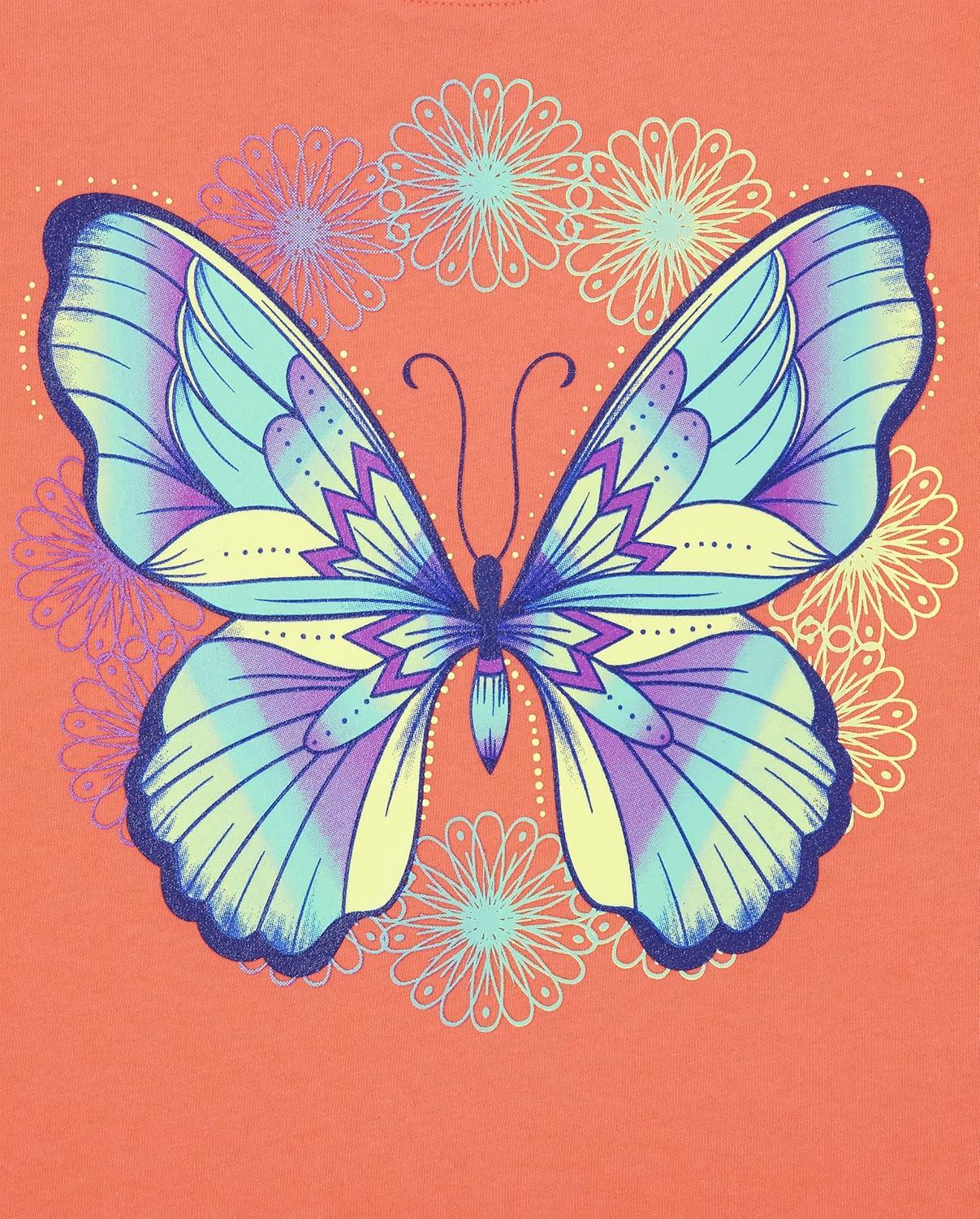 imageThe Childrens Place Girls TrendsIcons Short Sleeve Graphic TShirts4 PackOwlButterflyUnicornCat