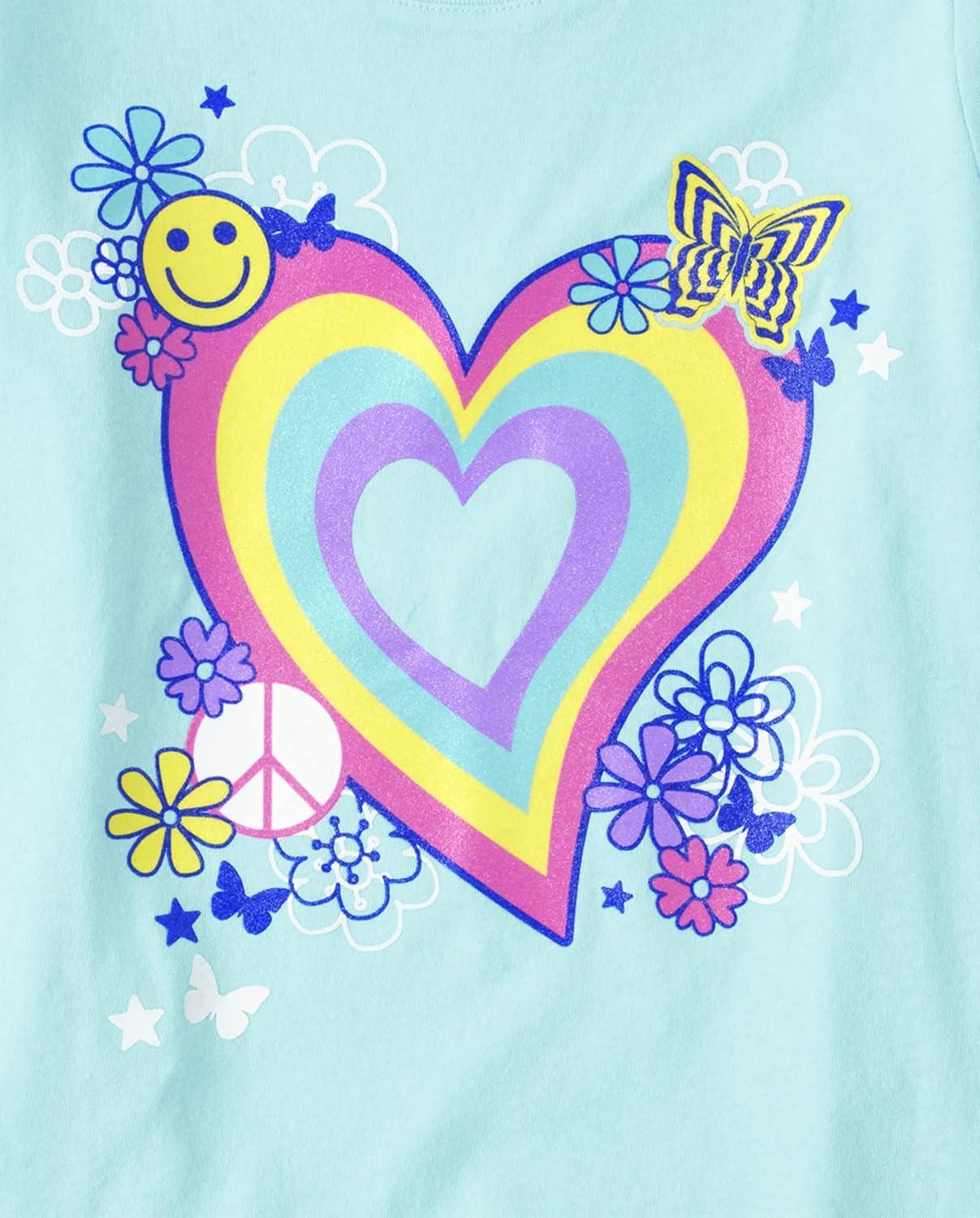 The Children's Place Girls Unicorns,Butterfly Short Sleeve Graphic T-Shirts,3 Pack(Butterfly/Rainbow Heart/Happy)