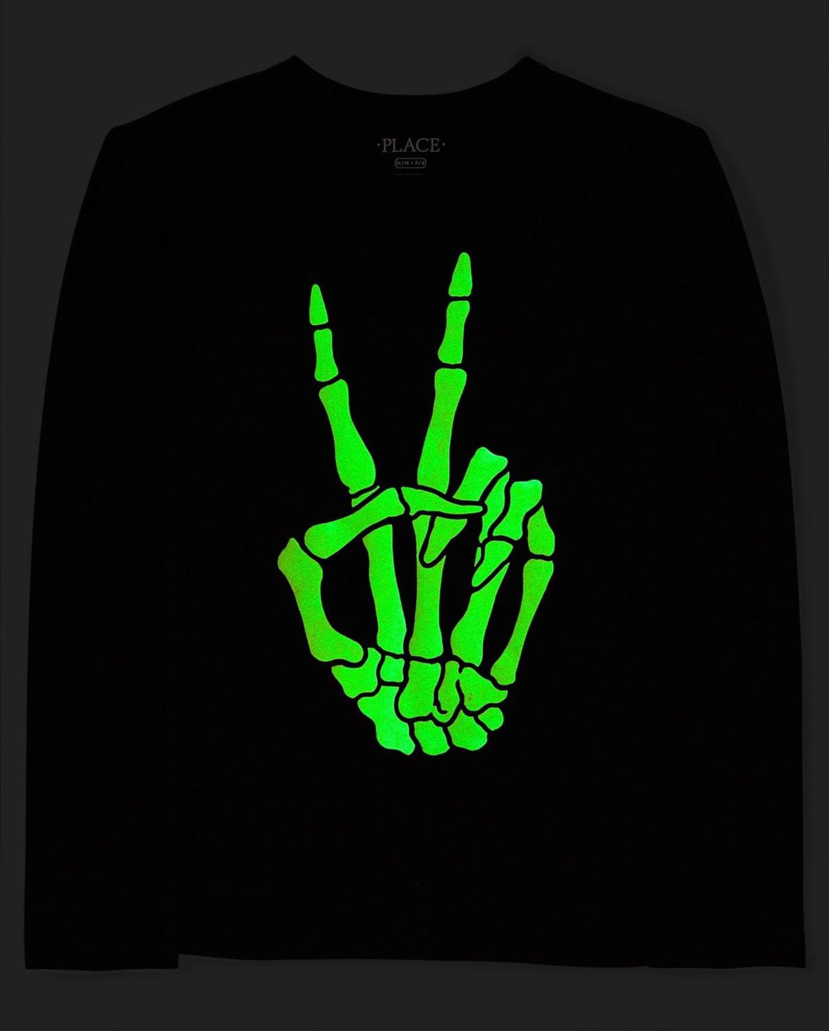 The Children’s Place Unisex-Baby and Toddler All Holidays,Birthdays Long Sleeve Graphic T-Shirts(Halloween Skeleton Peace Glow)