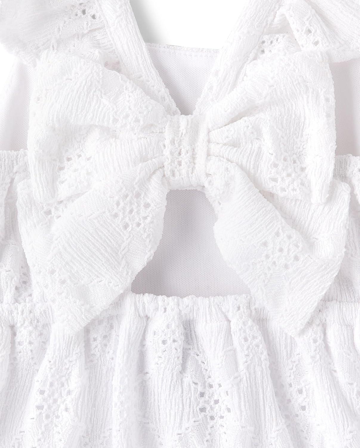 FEATURES: Fully lined, cut-out & non-functional bow at back, tiered skirt, allover eyelet
